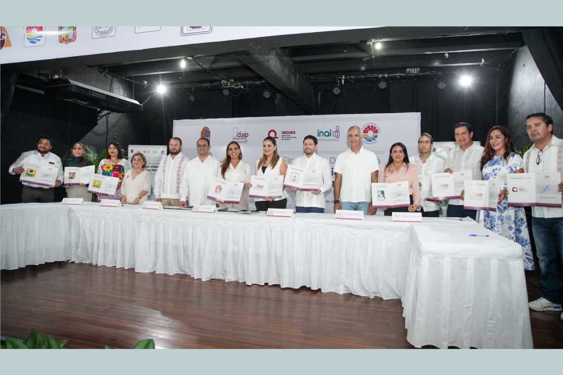 Mientras que en la Firma de las Declaratorias de Municipios Abiertos, intervinieron los municipios de Cozumel, Felipe Carrillo Puerto, José María Morelos, Lázaro Cárdenas, Tulum y Puerto Morelos, las Comisionadas y Comisionados del Organismo Nacional y Estatal de Transparencia -INAI e IDAIPQROO-.