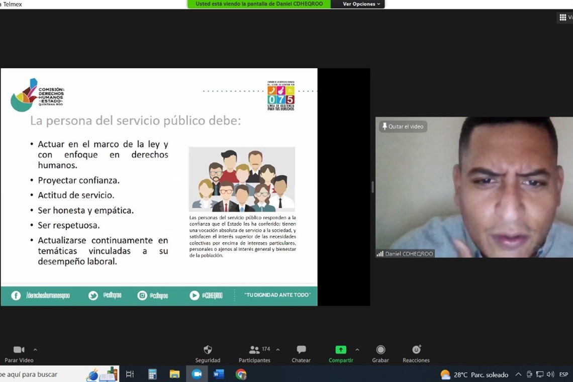 Este curso forma parte del Taller-Diplomado que ofrece la CDHQROO a las personas servidoras públicas de los órganos autónomos del Estado de Quintana Roo, desde el mes de noviembre de 2022 y concluye en mayo del año en curso.