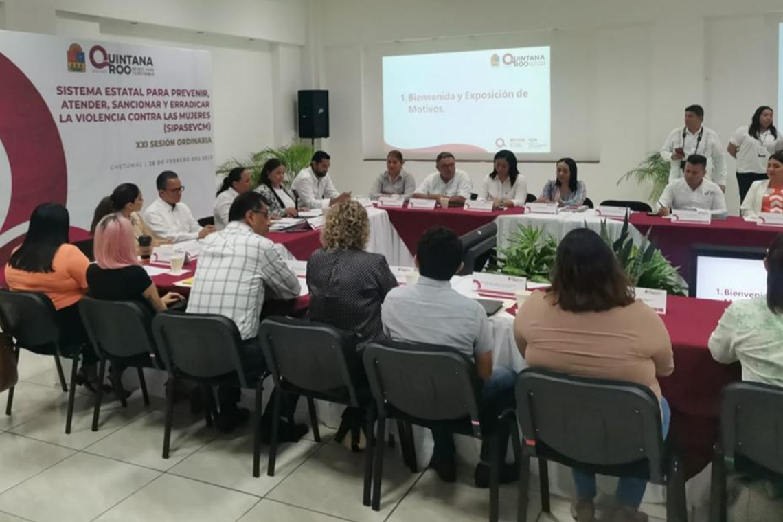 En cumplimiento a lo dispuesto en el artículo 34 de la Ley de Acceso de las Mujeres a una Vida Libre de Violencia del Estado de Quintana Roo, se convocó a dicha sesión, misma que estuvo presidida por la Secretaria de Gobierno, María Cristina Torres Gómez y la Directora General del Instituto Quintanarroense de la Mujer (IQM) y Secretaria Ejecutiva del Sistema Estatal PASEVCM, María Hadad Castillo.