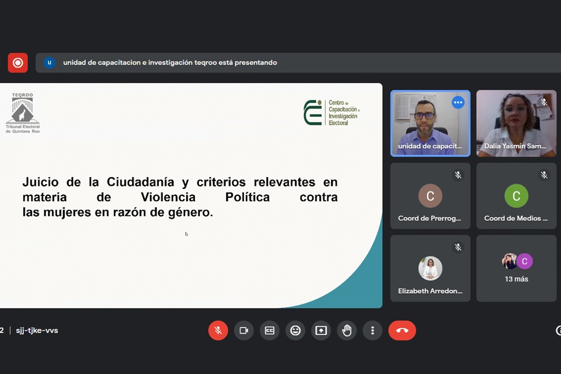 En esta ocasión, el jefe de Área de Investigación del Tribunal, Eliud de la Torre Villanueva fue el encargado de impartir de manera virtual la plática “Juicio de la Ciudadanía y Criterios relevantes en materia de Violencia Política contra la Mujer en Razón de Género”.