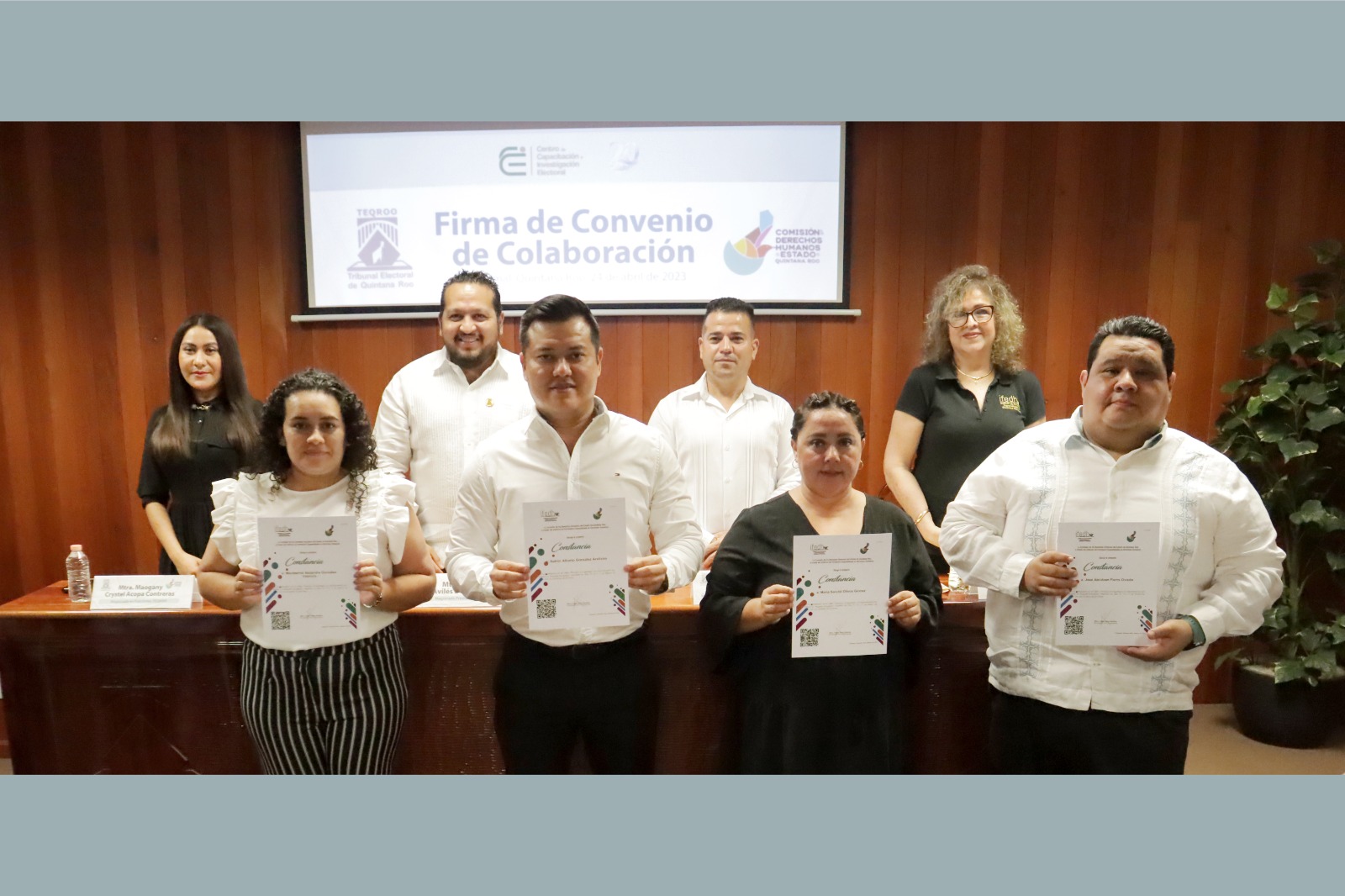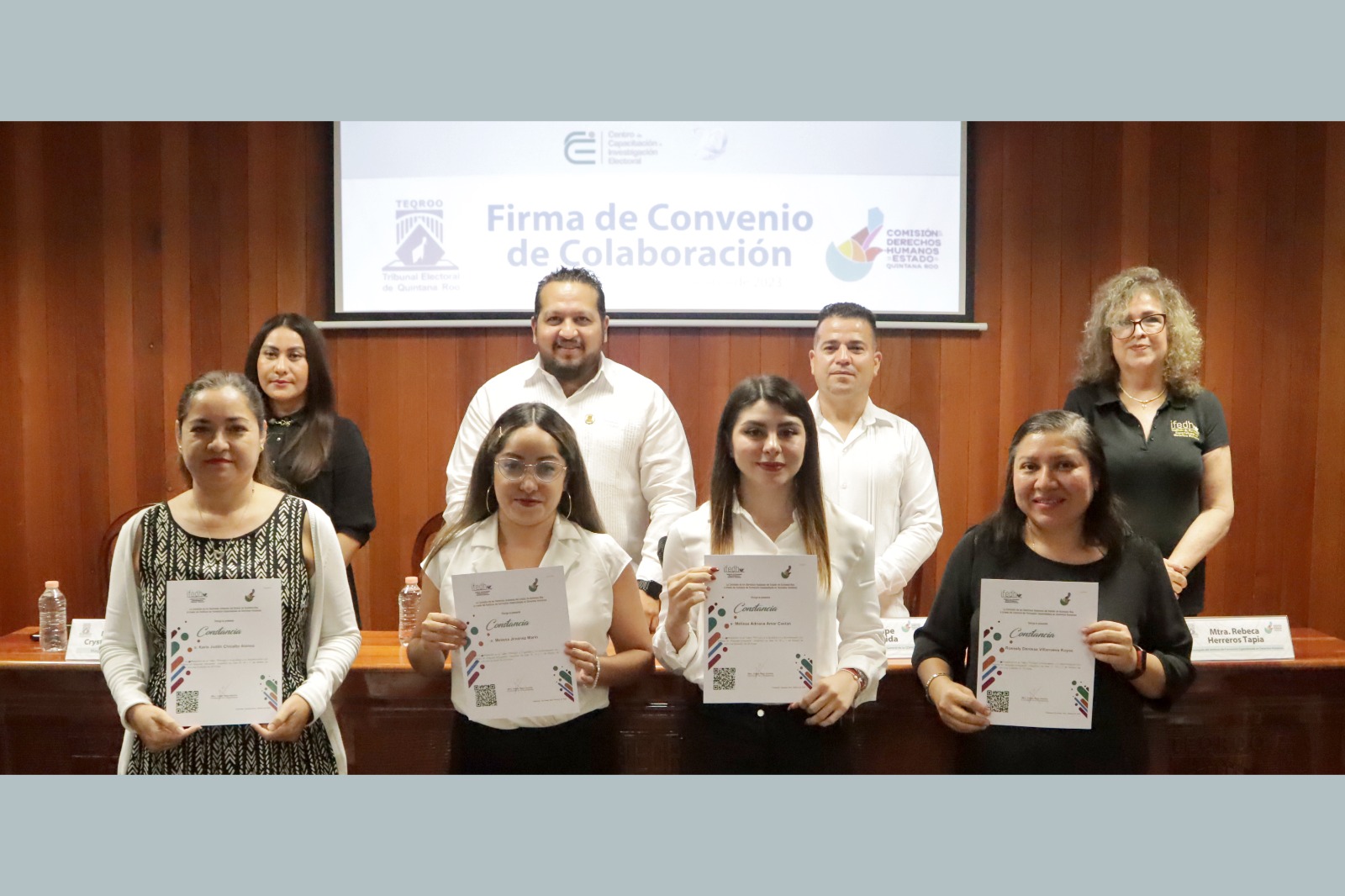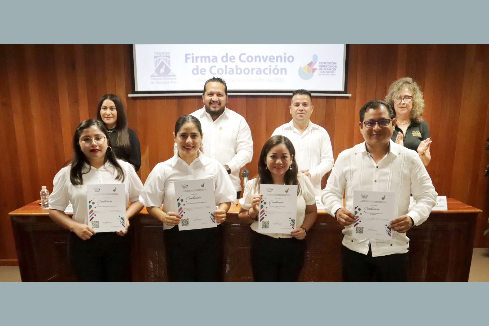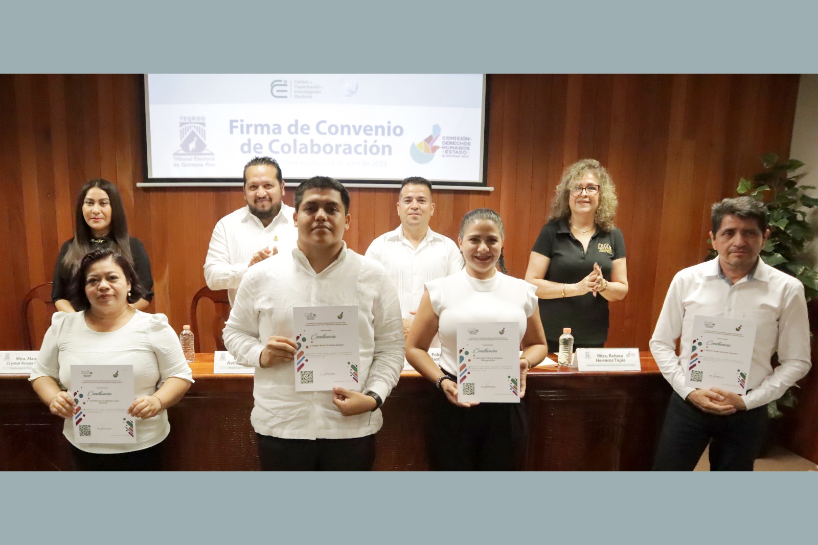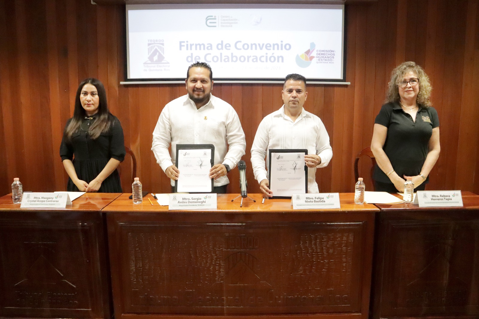 El documento firmado por el Magistrado Presidente del TEQROO, Sergio Avilés Demeneghi y Felipe Nieto Bastida, Encargado del Despacho de la Presidencia y Primer Visitador General de la CDHEQROO, tiene como objeto establecer las bases y mecanismos para desarrollar proyectos y programas de capacitación, formación, promoción y difusión en materia de derechos humanos, legalidad, perspectiva de género, entre otros temas de interés general para ambas instituciones. Así como el diseño e implementación de un programa de capacitación en materia de derechos humanos.