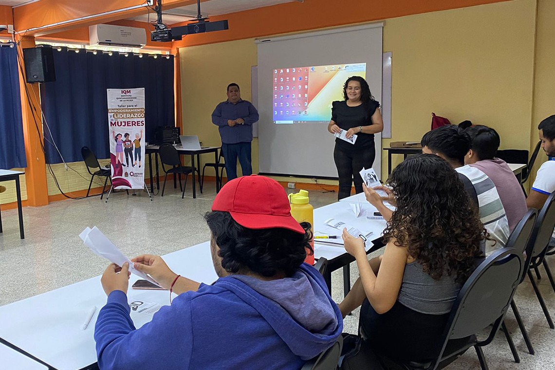 Chetumal, Quintana Roo a 25 de abril de 2023.- Personal del Tribunal Electoral de Quintana Roo (TEQROO) y de la Defensoría Pública Electoral impartieron pláticas sobre Violencia Política contra la Mujer en Razón de Género (VPCMRG) y la Función de la Defensoría Pública Electoral, respectivamente, ante estudiantado de arquitectura, ingeniería empresarial y biología del Instituto Tecnológico de Chetumal, como parte del Taller de Empoderamiento y Liderazgo para las Mujeres organizado por el Instituto Quintanarroense de la Mujer (IQM).