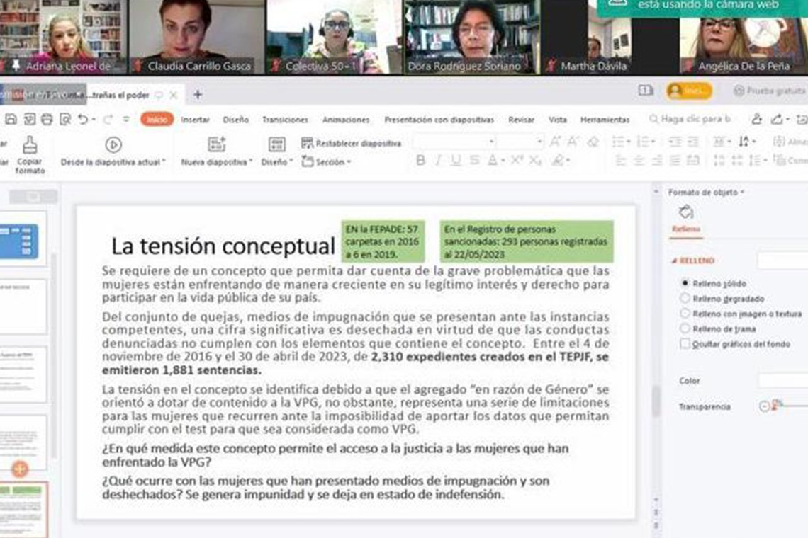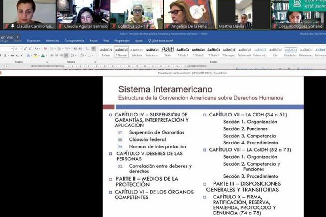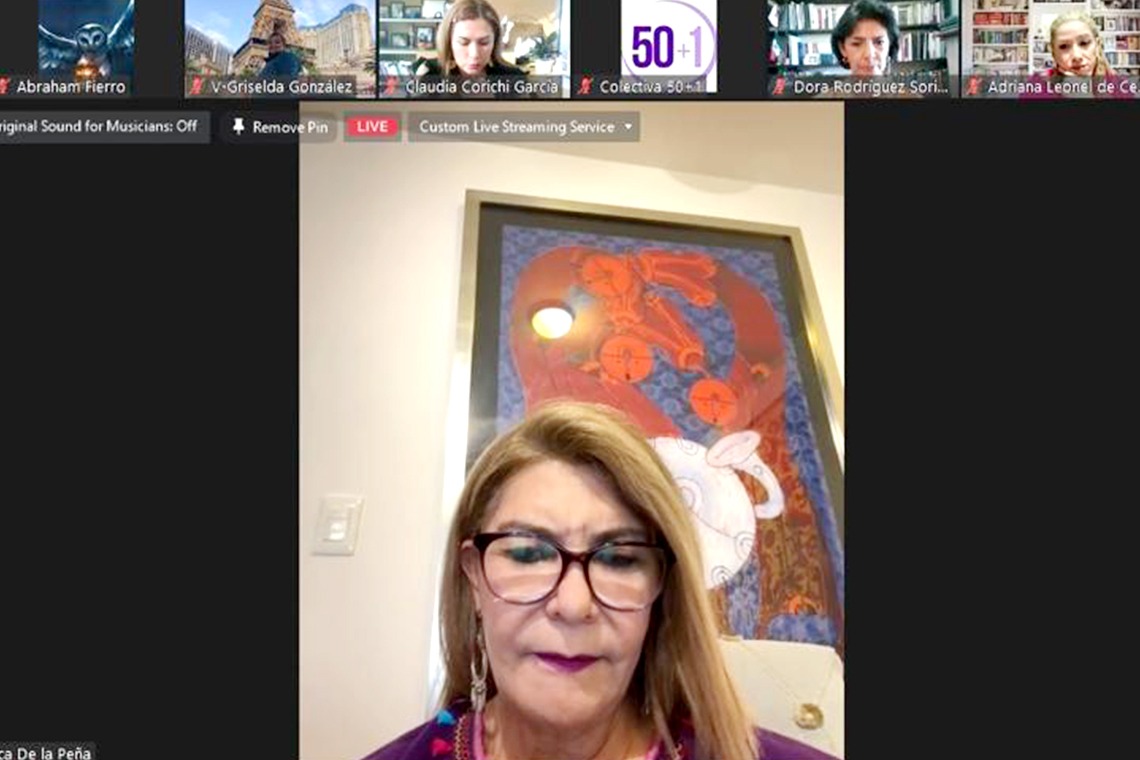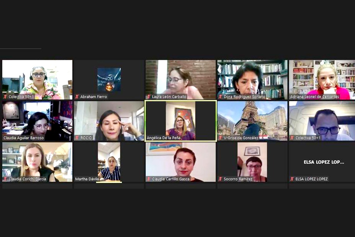 El evento fue transmitido por videoconferencia, donde la bienvenida estuvo a cargo de Claudia Corichi García, presidenta nacional del Colectivo 50+1, en tanto que las demás ponentes fueron Claudia Aguilar, Adriana Leonel de Cervantes, Dora Rodríguez y Martha Dávila. La moderación corrió a cargo de Angélica de la Peña Gómez, presidenta de la Comisión de Derechos Humanos de 50+1.
