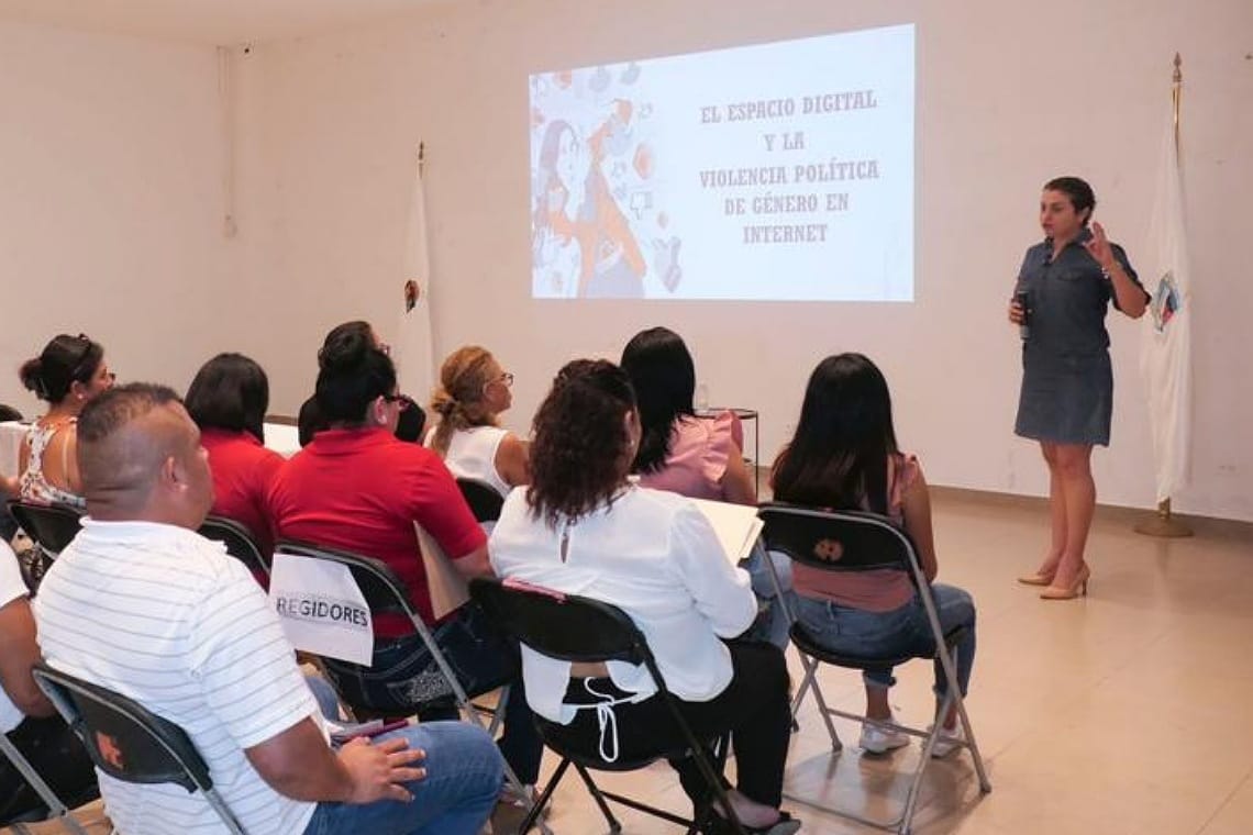 Durante la conferencia presentó diversos ejemplos de resoluciones sobre casos de Violencia Política contra la Mujer en Razón de Género en espacios digitales, emitidos por el Tribunal Electoral del Poder Judicial de la Federación (TEPJF) y el propio Tribunal Electoral de Quintana Roo.