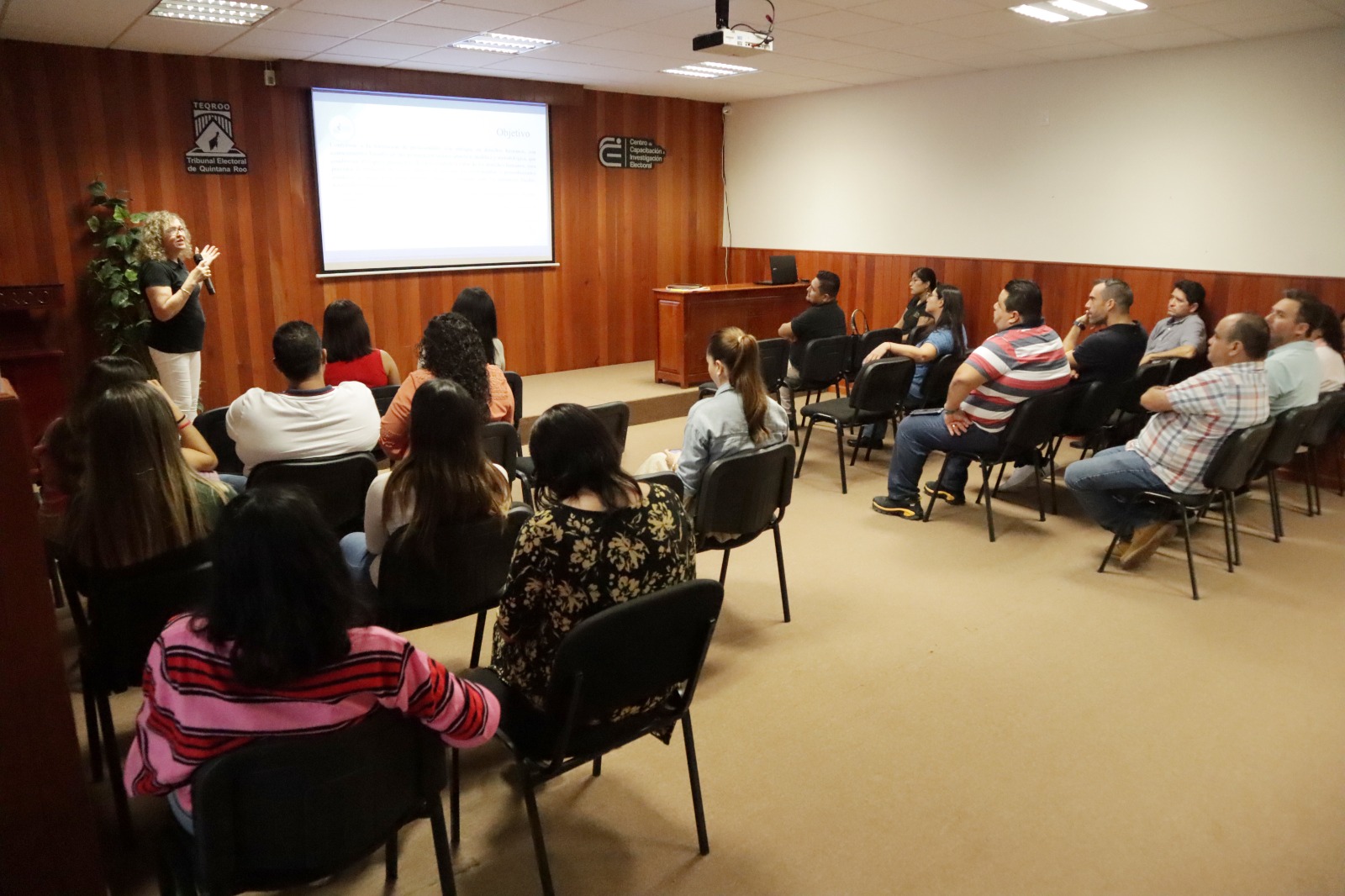 Por parte de la CDHEQROO, la encargada de explicar los detalles de la maestría fue la encargada del Instituto de Formación Especializada en Derechos Humanos (IFEDH), Rebeca Beatriz Herreros Tapia, en el Aula del Centro de Capacitación e Investigación Electoral.