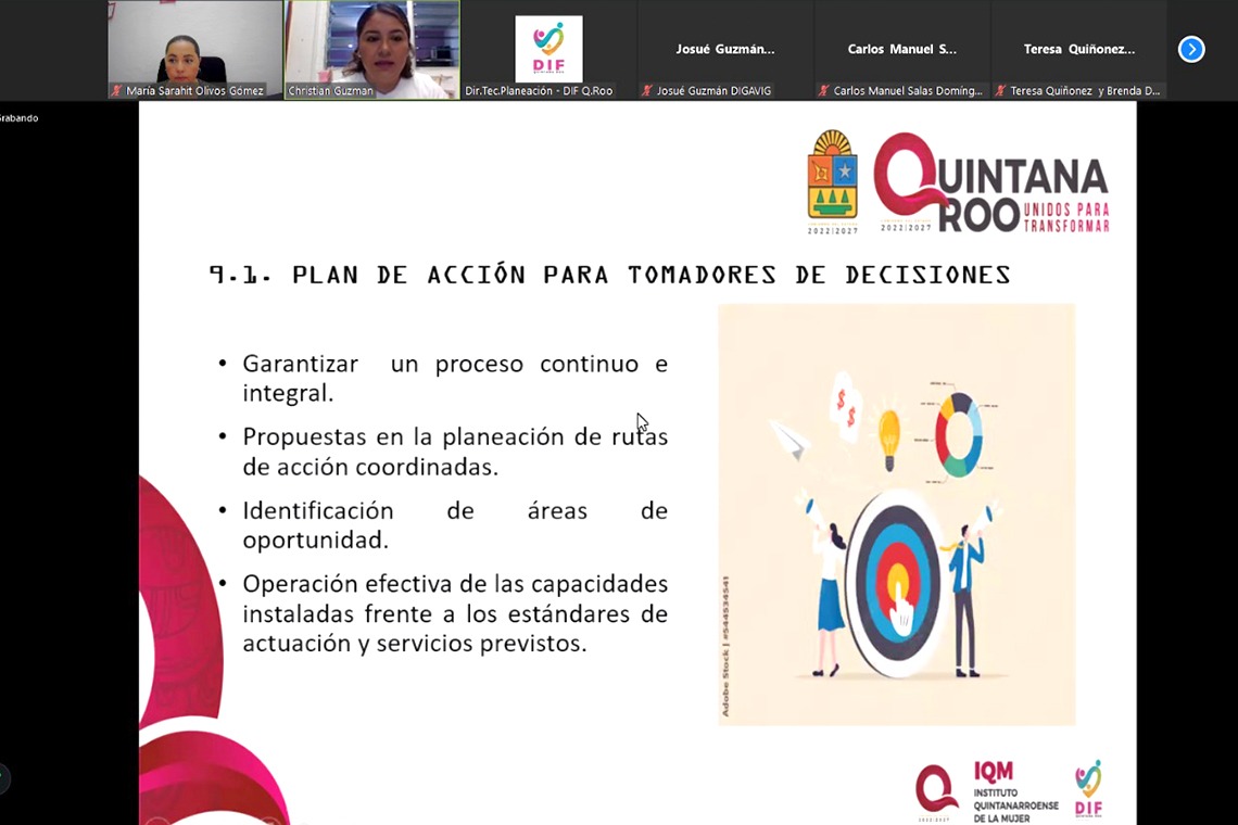 La convocatoria a esta sesión la realizó la Directora del Centro de Atención a Víctimas de Violencia, Christian Dzul Guzmán, en la cual trataron temas relacionados con la construcción del “Modelo para la Atención y Protección Integral para las Mujeres que viven Violencia en el Estado de Quintana Roo”.