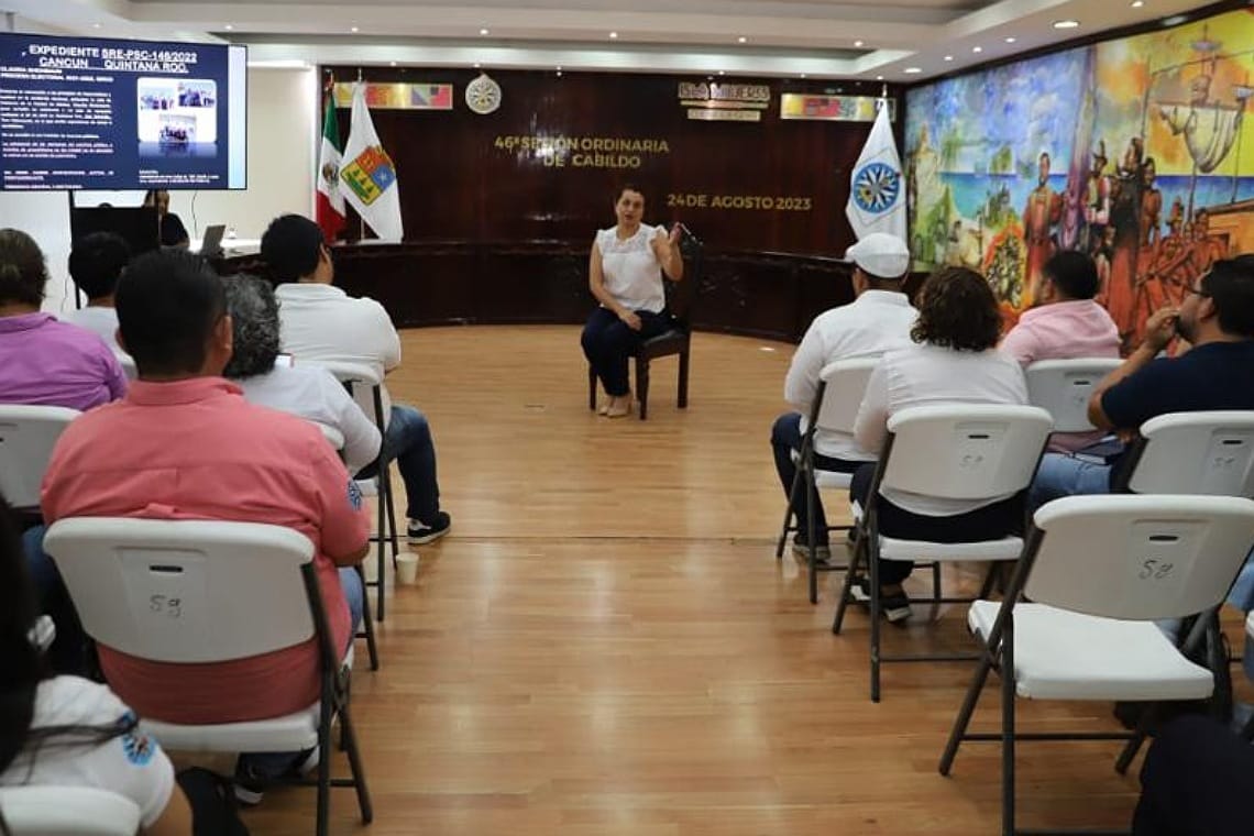 La Presidenta Municipal de Isla Mujeres, Teresa Atenea Gómez Ricalde fue la encargada de invitar a la Magistrada Carrillo Gasca a impartir dicho tema ante servidoras y servidores públicos del Ayuntamiento, en la Sala de Cabildos del Palacio Municipal.