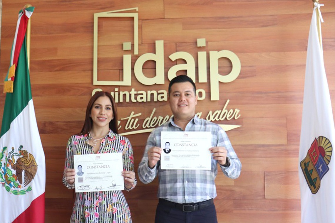 Chetumal, Quintana Roo a 08 de septiembre de 2023.- La Jefa de la Unidad de Transparencia del Tribunal Electoral de Quintana Roo, Ilse Berenice Cossío Lugo y el Secretario Ejectivo, Nahim Alberto González Arellano, concluyeron el “Diplomado en Transparencia, Acceso a la Información y Protección de Datos Personales”, impartido por el Instituto de Acceso a la Información y Protección de Datos Personales (IDAIPQROO).