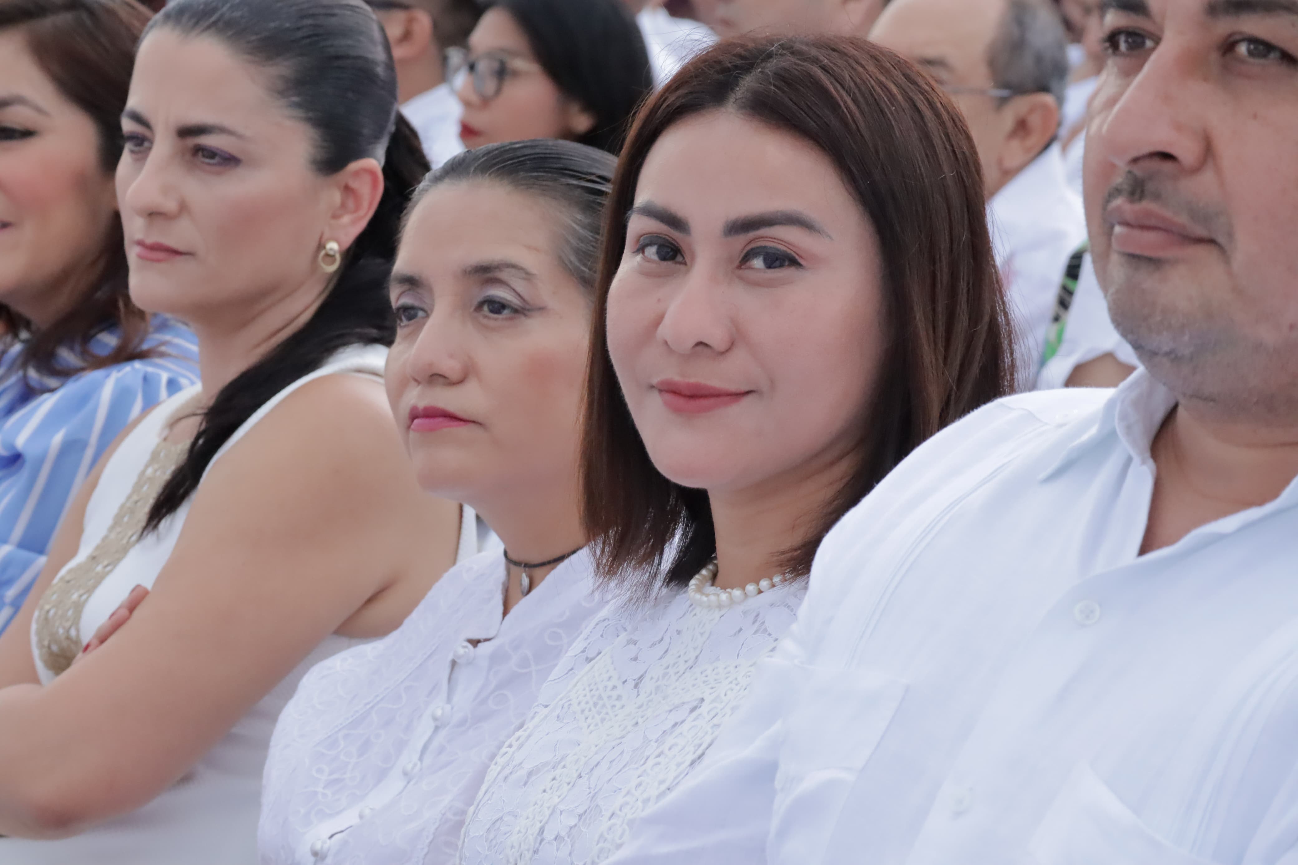 La Gobernadora dirigió un mensaje al pueblo de Quintana Roo, al que asistieron el Diputado Luis Humberto Aldana Navarro, Presidente de la Junta de Gobierno y Coordinación Política de la XVII Legislatura del Congreso del Estado y el Magistrado Heyden José Cebada Rivas, Presidente del Tribunal Superior de Justicia del Estado; así como titulares de Gubernaturas, Diputados Federales, funcionarios del Gobierno Federal, el gabinete estatal, titulares de órganos autónomos e invitados especiales.