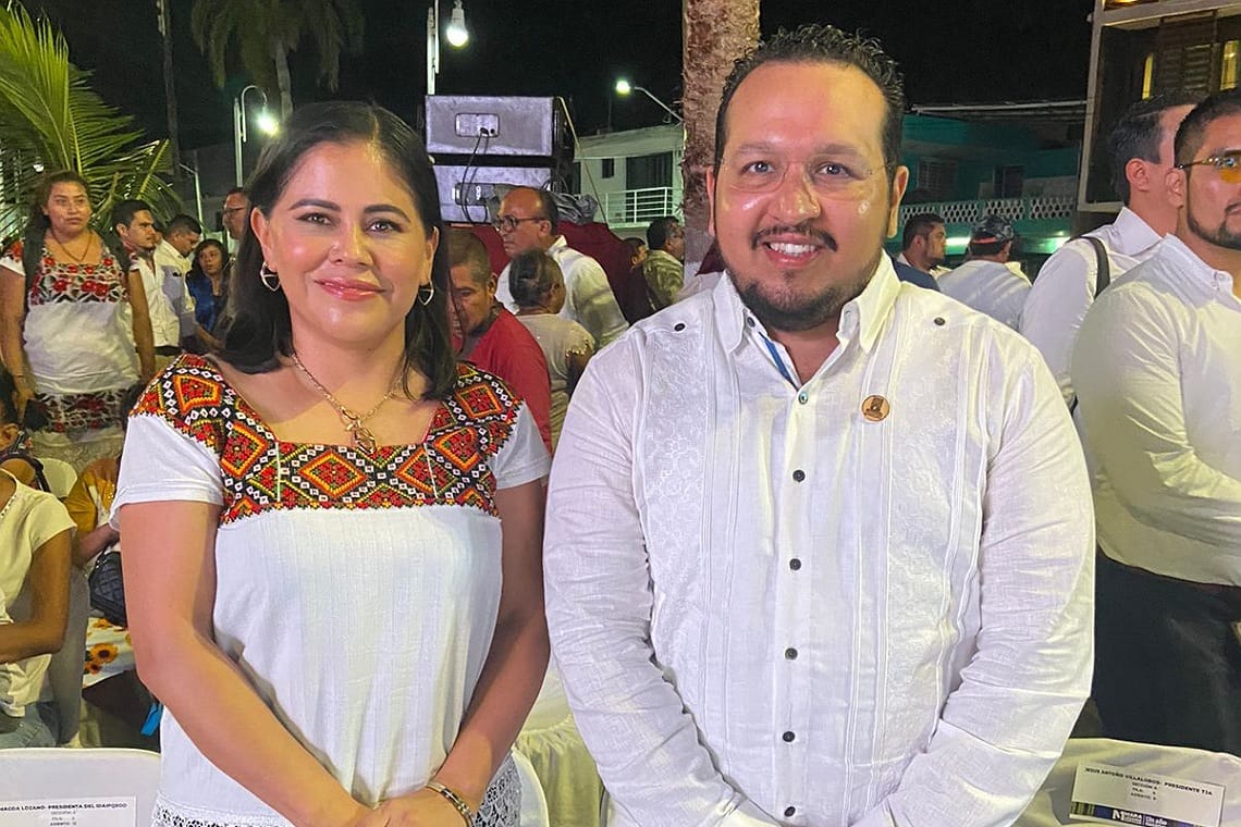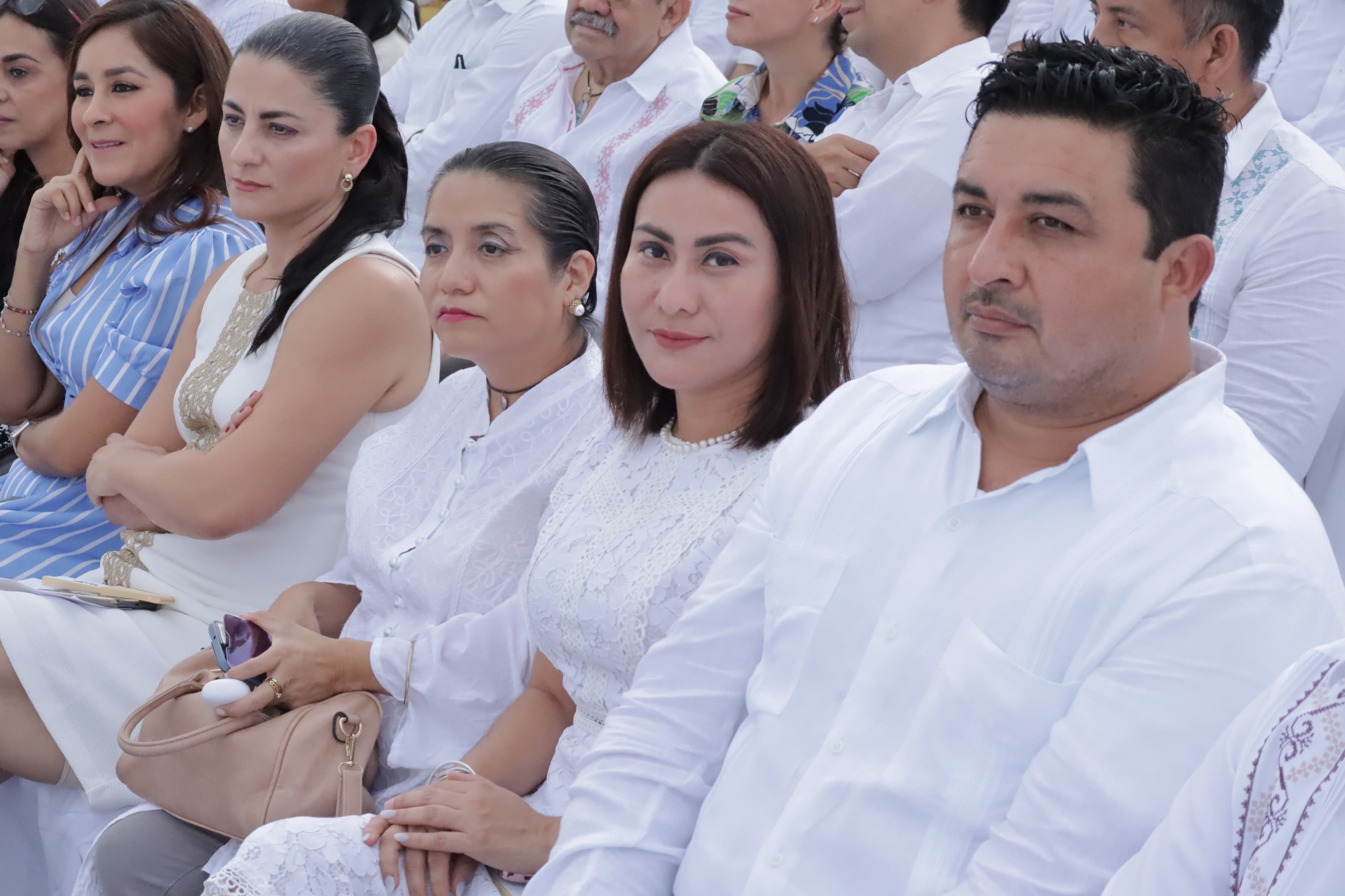 Chetumal, Quintana Roo a 11 de septiembre de 2023.- El Magistrado Presidente del Tribunal Electoral de Quintana Roo (TEQROO), Sergio Avilés Dememeghi y la Magistrada en Funciones, Maogany Crystel Acopa Contreras asistieron al Primer Informe de Gobierno de la Gobernadora María Elena H. Lezama Espinosa, realizado en la Fuente del Pescador.