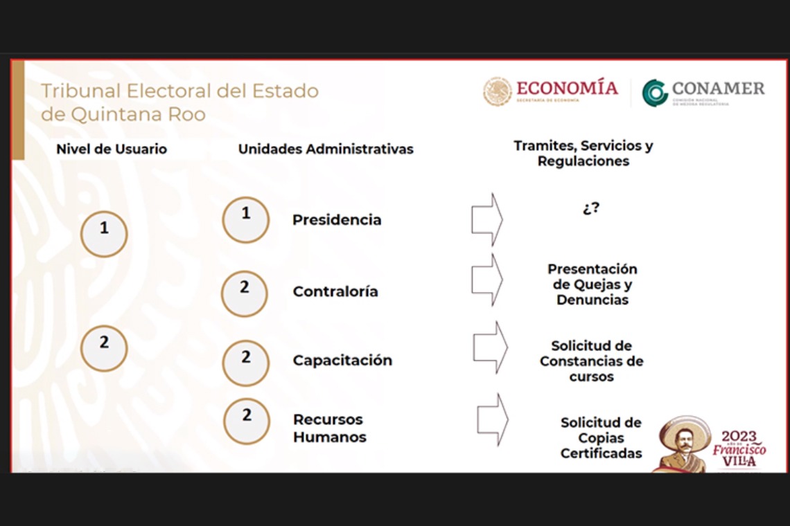 La reunión fue a través de videocobferencia, con el objetivo de Presentar la Estrategia y el Calendario de Actividades de la Integración del Catálogo de Regulaciones, Trámites y Servicios del TEQROO.
