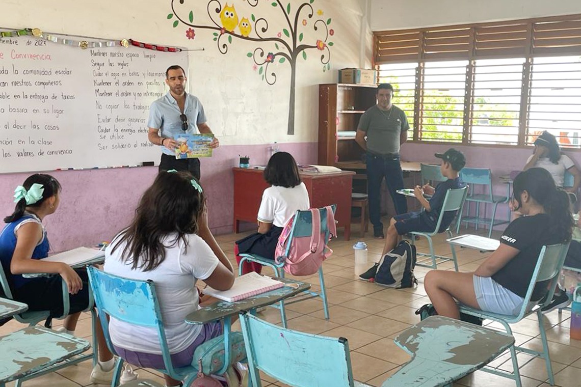 La Jefa del Área de Capacitación, Rossely Denisse Villanueva Kuyoc y el Jefe de Área de Investigación, Eliud de la Torre Villanueva visitaron dicha escuela con la finalidad de fortalecer la cultura democrática en la niñez y contribuir en la formación ciudadana.