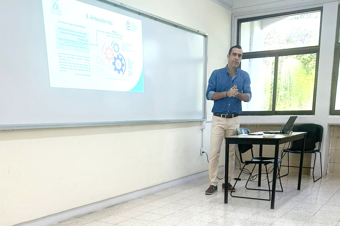 El encargado de exponer el tema fue Eliud de la Torre Villanueva, Jefe del Área de Investigación, con el objetivo de que identifiquen y conozcan el concepto de violencia política contra las mujeres en razón de género, el marco jurídico nacional y local vigente en la materia para prevenir, erradicar, sancionar y reparar integralmente esta conducta violatoria a derechos humanos de las mujeres, identificando los mecanismos e instancias encargadas de su atención.
