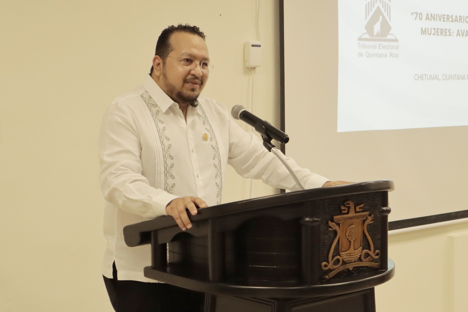 En el Aula Magna, el Magistrado Presidente del TEQROO, Sergio Avilés Demeneghi invitó a la audiencia a realizar un recuento de los logros y desafíos de la lucha de las mujeres para tener voz y participación en las decisiones del país, recordó que en la historia de México hay constancia de que desde hace mucho tiempo atrás han participado en acciones, movimientos para defender sus derechos.