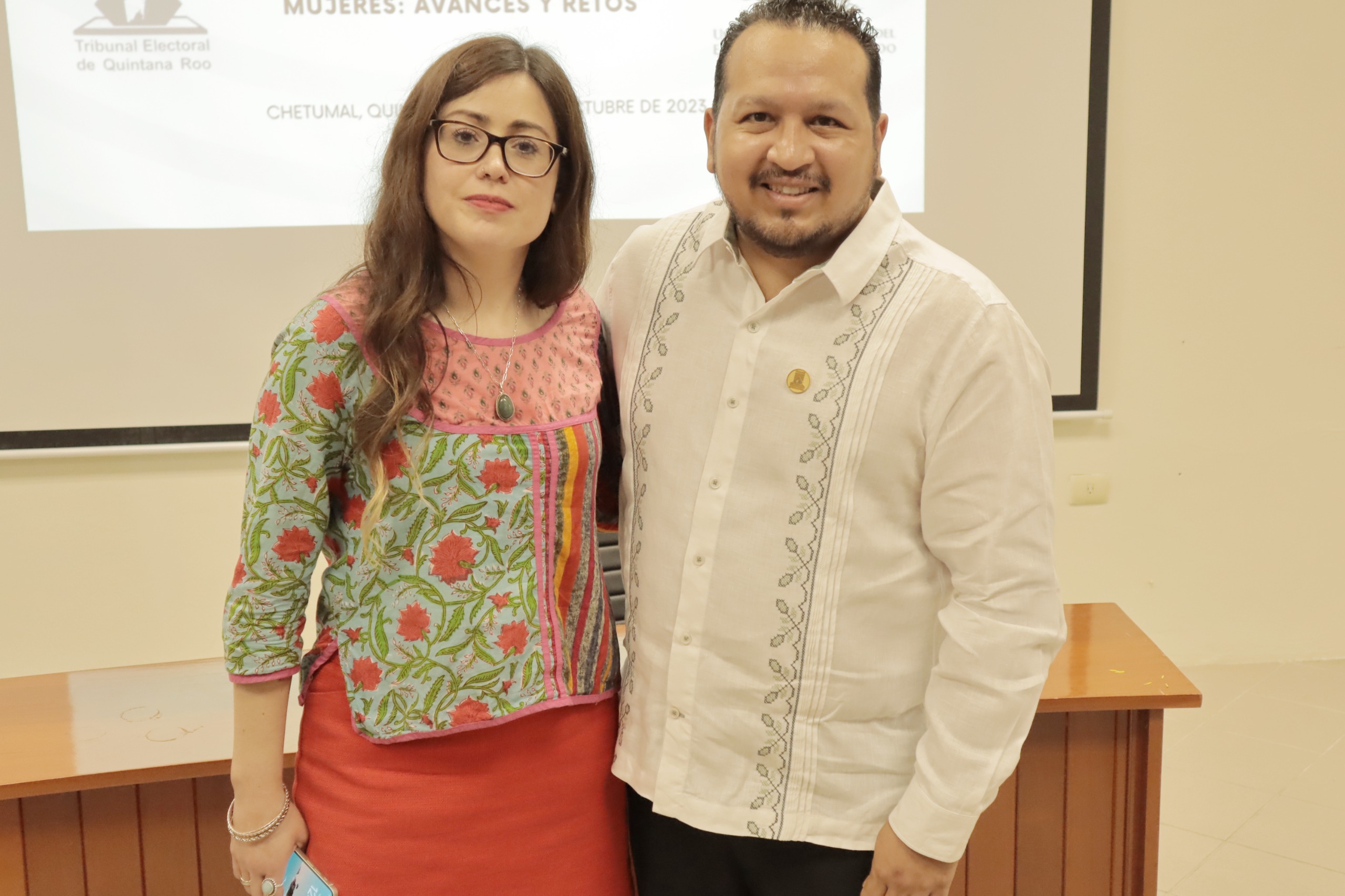 Chetumal, Quintana Roo a 17 de octubre de 2023.- El Tribunal Electoral de Quintana Roo (TEQROO) y la Universidad de Quintana Roo (UQROO), organizaron la conferencia “70 Aniversario del voto de las mujeres: avances y retos”, a cargo de Martha Alejandra Tello Mendoza, Profesora Investigadora de la Escuela Judicial Electoral (EJE) del Tribunal Electoral del Poder Judicial de la Federación (TEPJF), evento en el que estuvieron presentes el Magistrado Presidente, Sergio Avilés Demeneghi, la Magistrada Claudia Carrillo Gasca y la Magistrada en Funciones, Maogany Crystel Acopa Contreras.