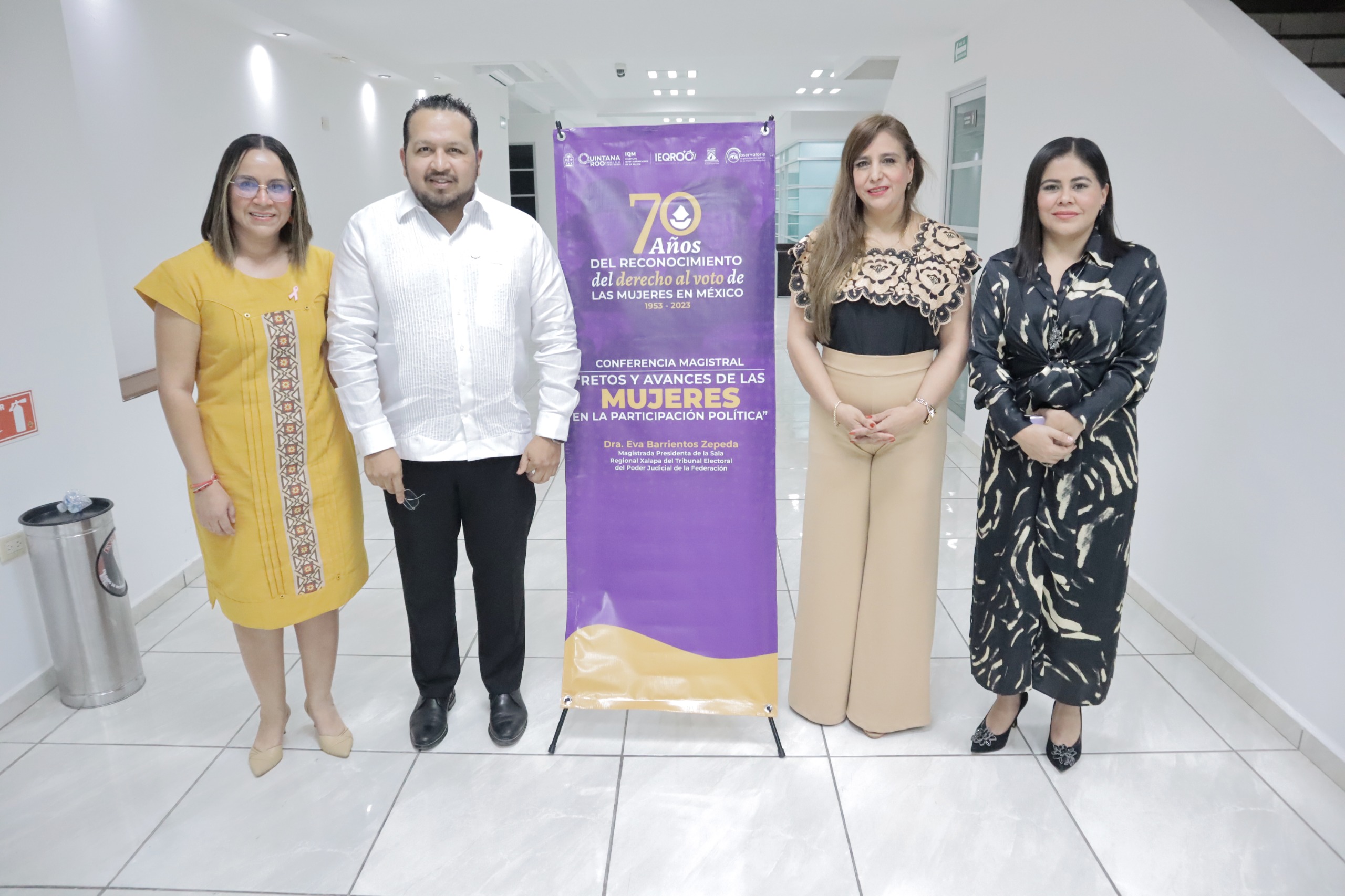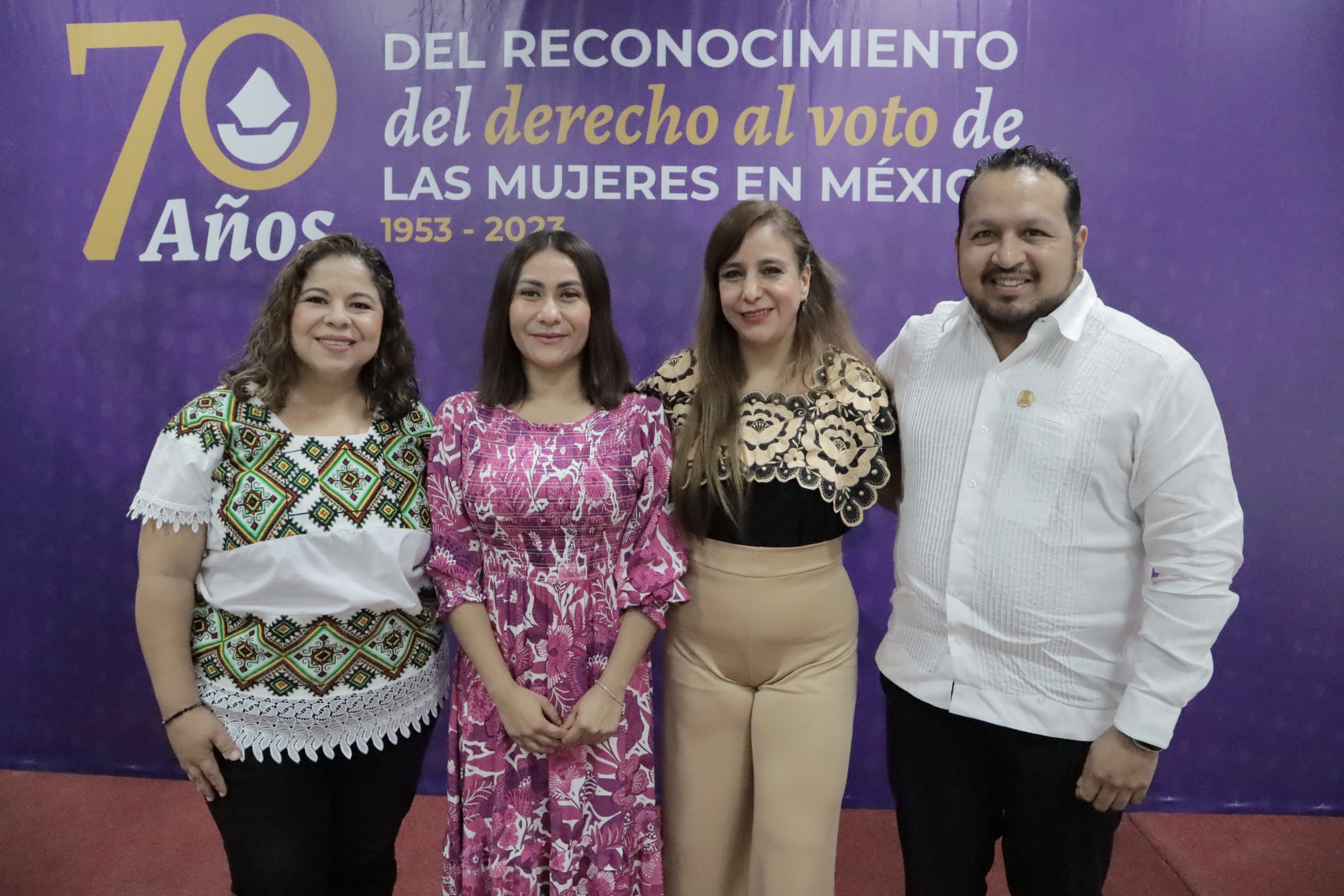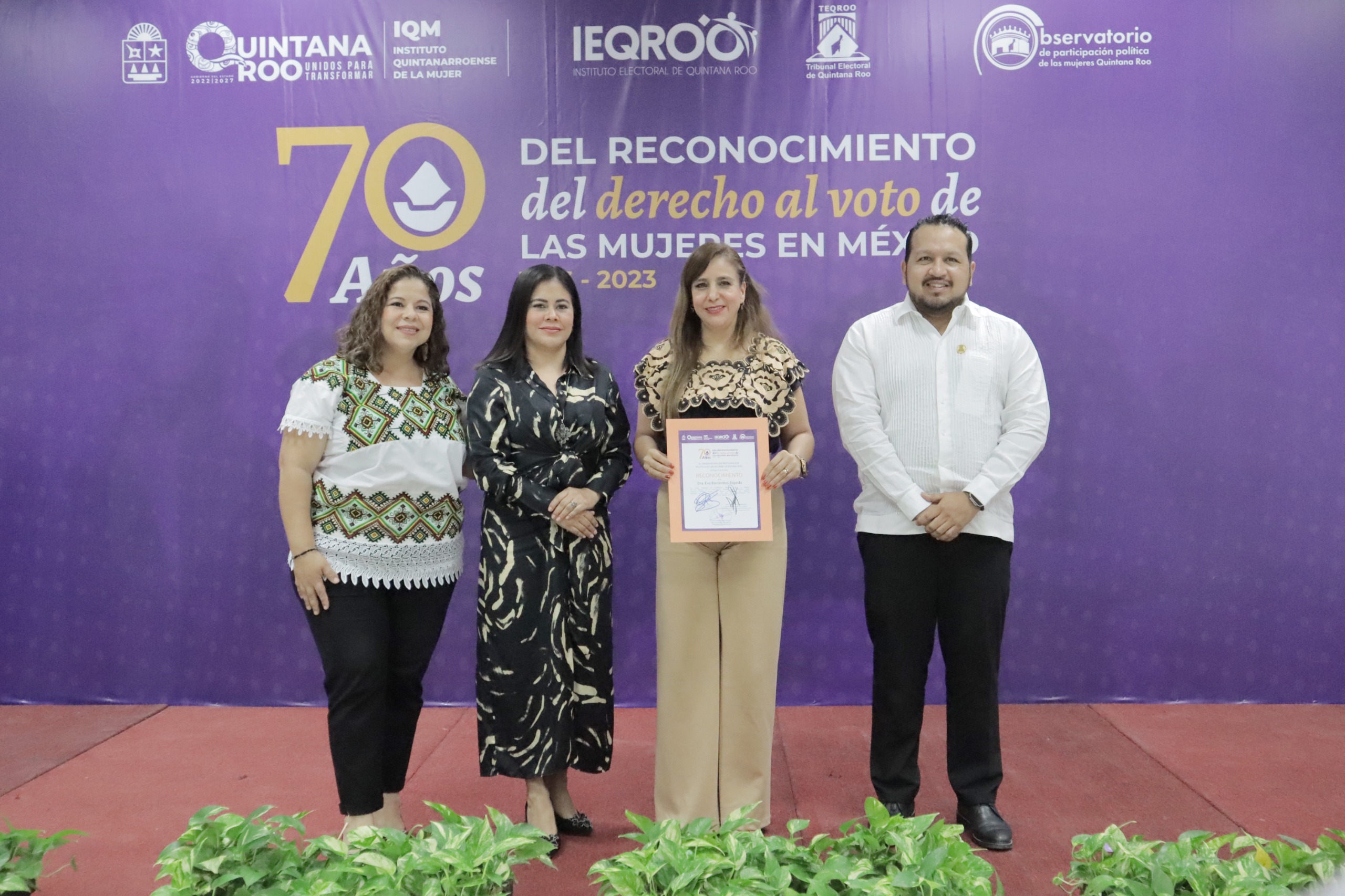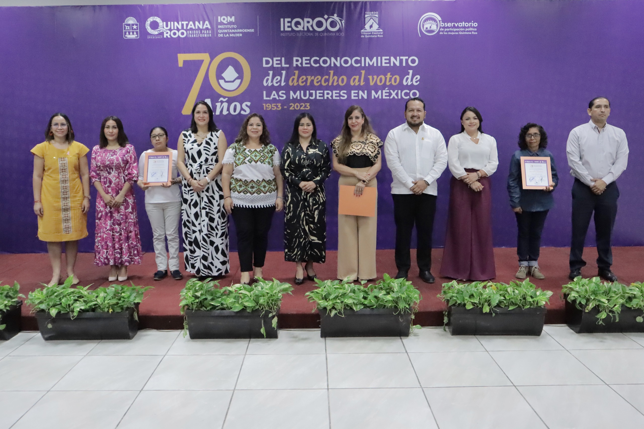 Evento realizado por el Tribunal Electoral de Quintana Roo (TEQROO), el Instituto Electoral de Quintana Roo (IEQROO) y el Instituto Quintanarroense de la Mujer (IQM), órganos integrantes del Observatorio de Participación Política de las Mujeres en Quintana Roo, en el marco del 70 Aniversario del Voto de la Mujer en México, con el objetivo de conocer los obstáculos y barreras tanto para la postulación, registro y ejercicio del cargo público para las mujeres; exponer las adversidades y retos que se han enfrentado y resuelto, así como los logros obtenidos, a partir de que fue otorgado el derecho al sufragio a la mujer en el país.