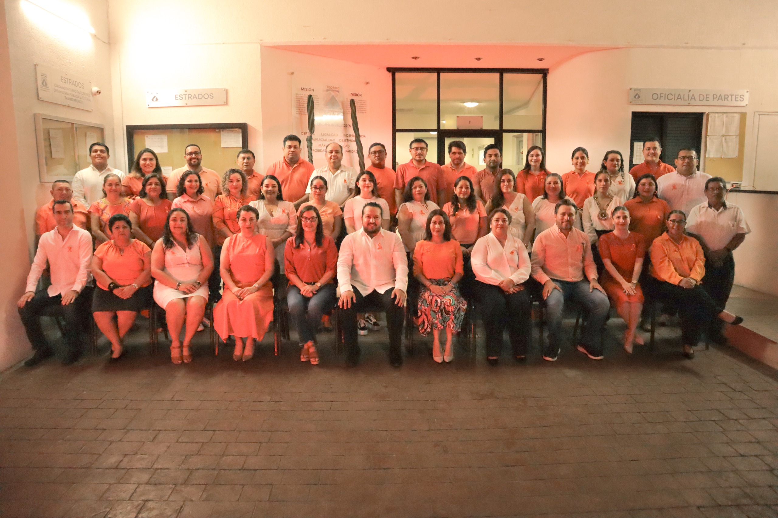 Chetumal, Quintana Roo a 25 de noviembre de 2023.- El Tribunal Electoral de Quintana Roo se ilumina de Naranja por el Día Internacional de la Eliminación de la Violencia contra la Mujer.