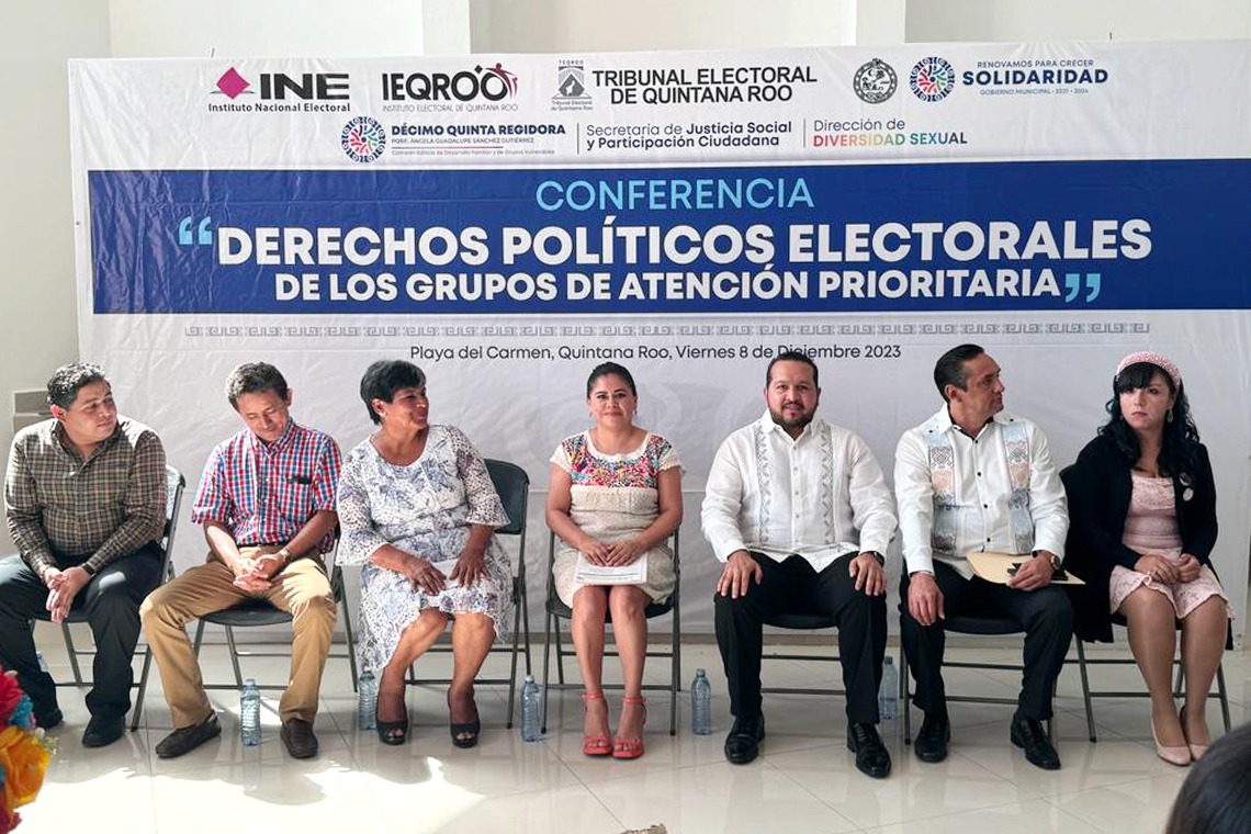 El evento fue organizado con el objetivo de fortalecer las acciones interinstitucionales a favor de los grupos en situación de vulnerabilidad jóvenes, personas indígenas, personas mayores con discapacidad y diversidad sexual en acciones afirmativas, el Instituto Nacional Electoral (INE), el Instituto Electoral de Quintana Roo (IEQROO) y del Tribunal Electoral de Quintana Roo (TEQROO), imparten conferencias conforme a sus facultades y atribuciones conferidas.