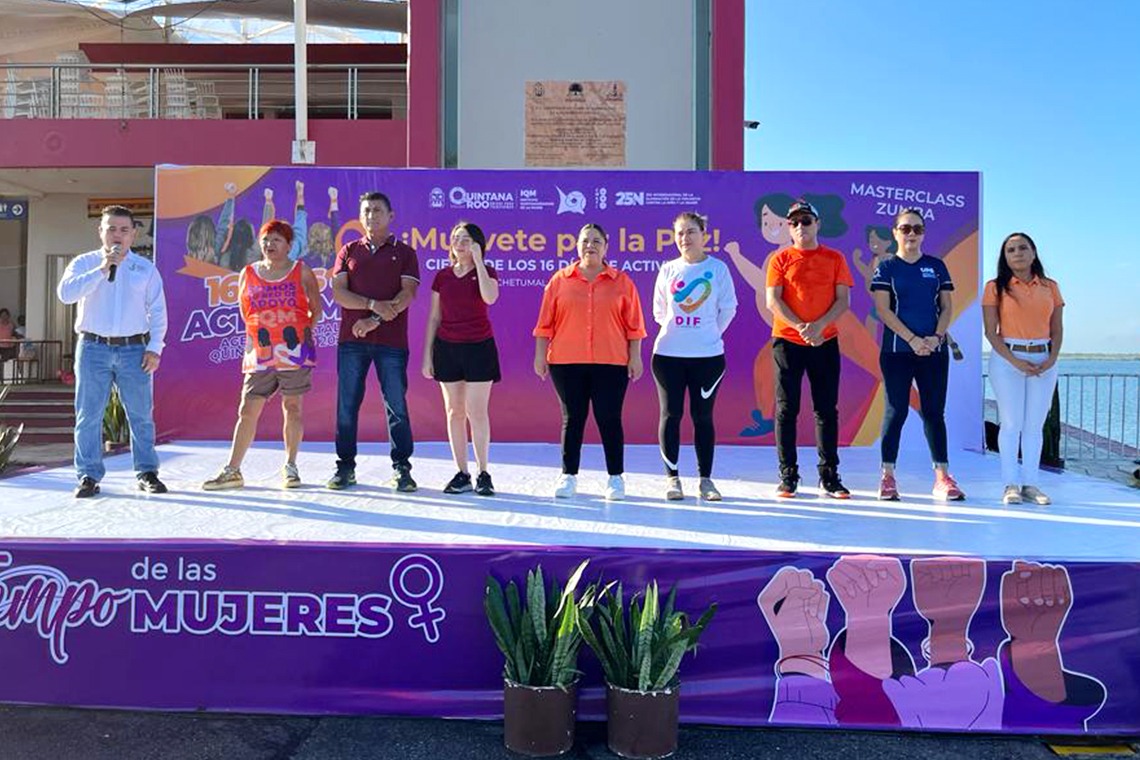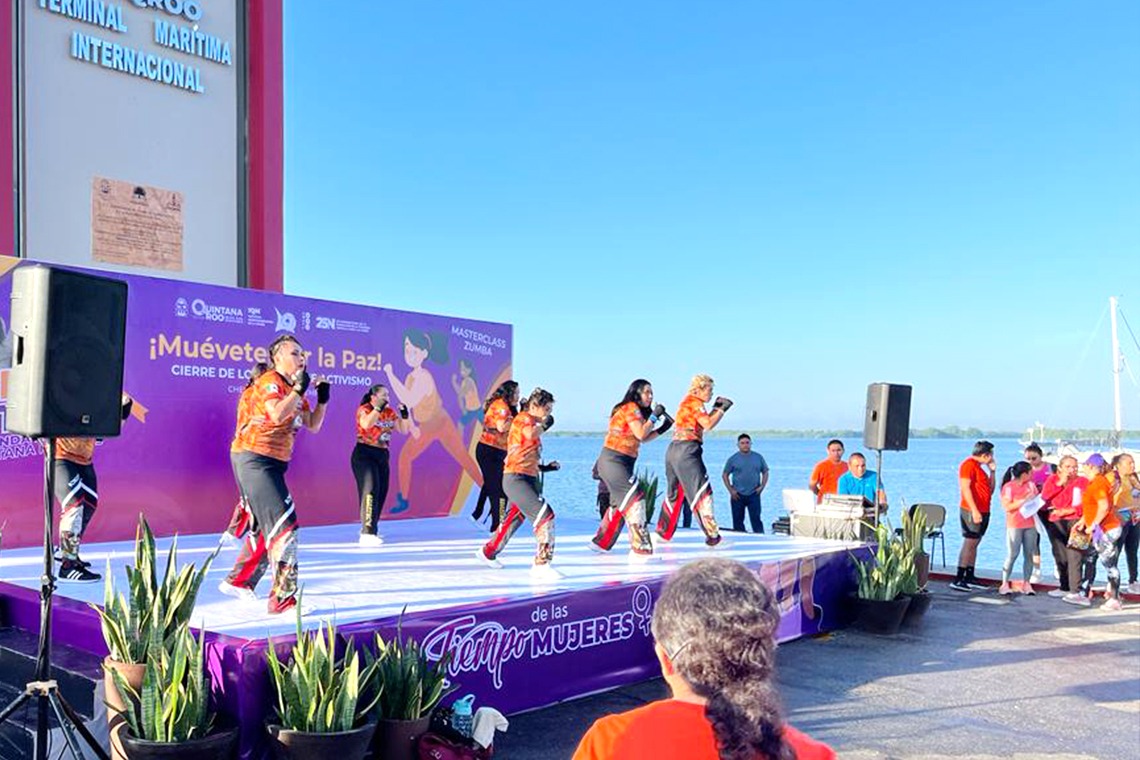Chetumal, Quintana Roo a 10 de diciembre de 2023.- Integrantes del Comité Institucional para la Igualdad de Género del Tribunal Electoral de Quintana Roo (TEQROO) asistieron al evento ¡Muévete por la Paz, Máster Class Zumba!, organizado por el Instituto Quintanarroense de la Mujer, en donde se realizó la clausura oficial de los 16 Días de Activismo contra la Violencia de Género, en el Muelle Fiscal de esta ciudad.