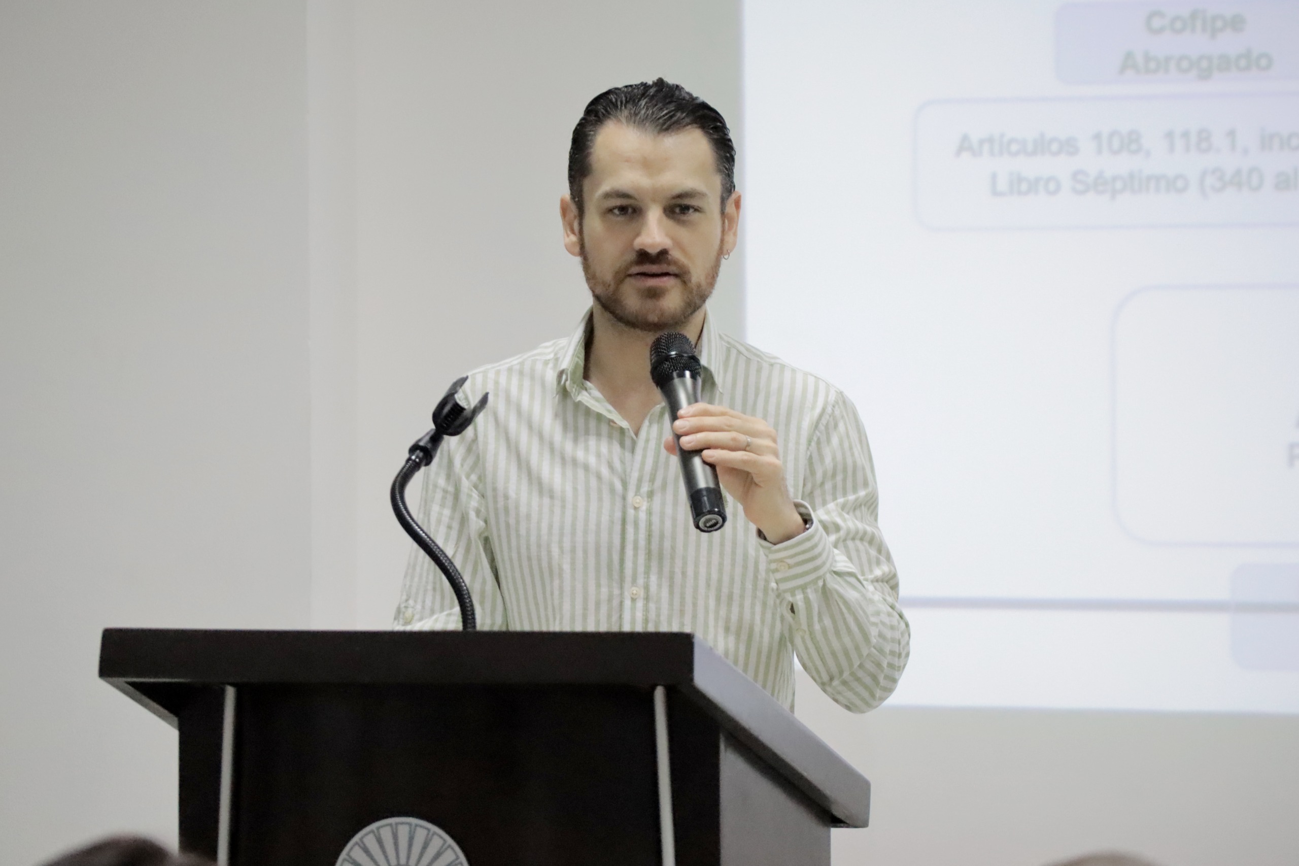 El profesor de la EJE del TEPJF, Alonso Vázquez Moyers, fue el encargado de impartir el curso “Prevención de delitos electorales y responsabilidades administrativas”, ante personas del servicio público, partidos políticos, medios de comunicación y público en general.