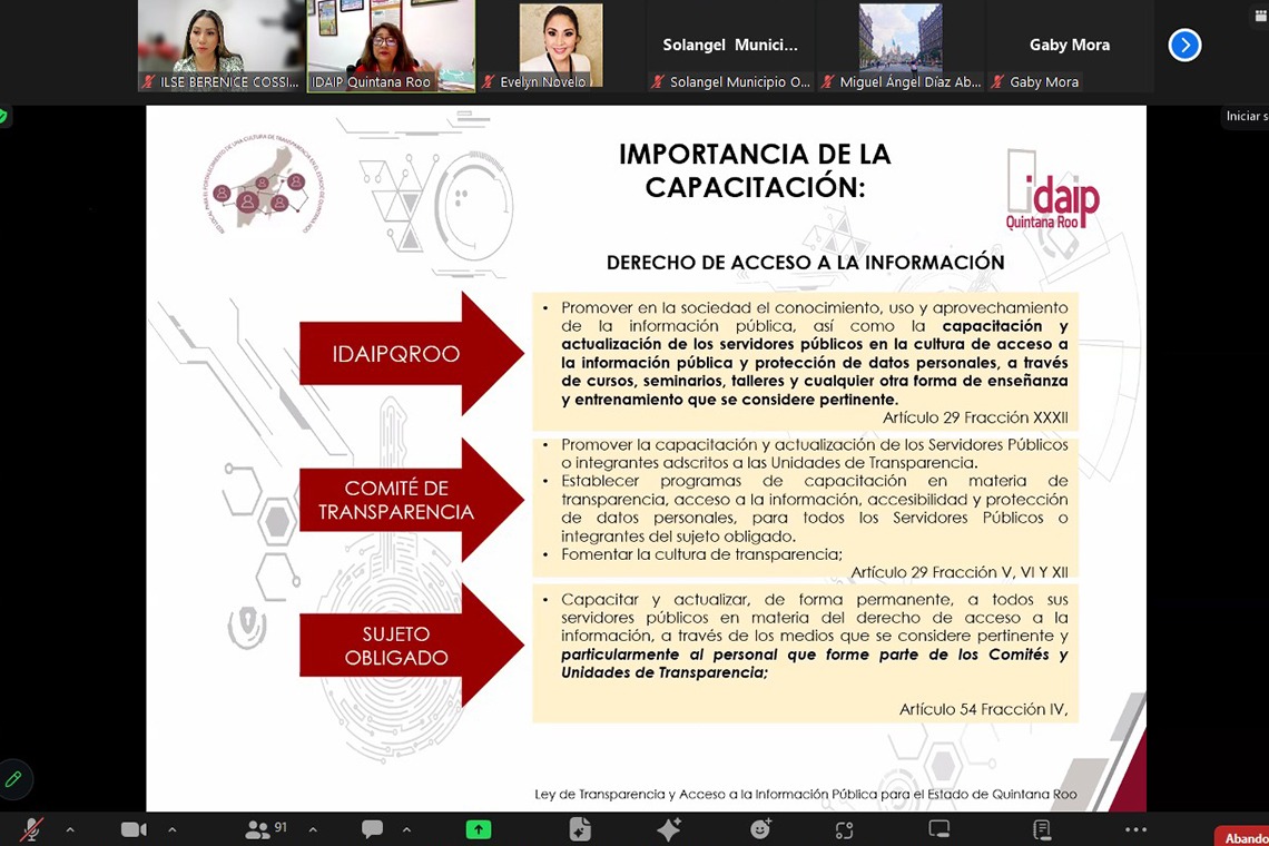 Chetumal, Quintana Roo a 15 de febrero de 2024.- La Jefa de la Unidad de Transparencia del Tribunal Electoral de Quintana Roo (TEQROO), Ilse Berenice Cossío Lugo participó de manera virtual en el taller “Balance de Resultados 2023”, impartido por el Instituto de Acceso a la Información y Protección de Datos Personales de Quintana Roo (IDAIPQROO).