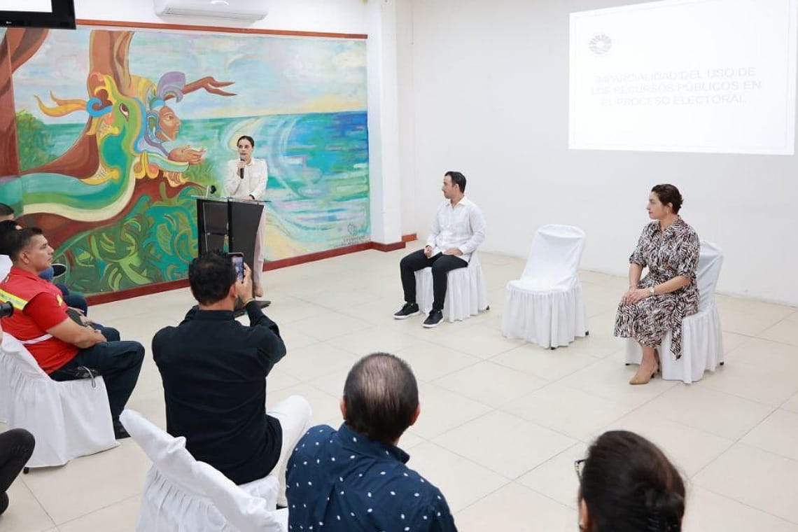Cancún, Quintana Roo a 23 de febrero de 2024.- La Magistrada del Tribunal Electoral de Quintana Roo, Claudia Carrillo Gasca impartió la conferencia el “Principios de Imparcialidad en el uso de recursos públicos y equidad en la contienda para los procesos electorales ordinarios y extraordinarios”, ante personal del Ayuntamiento de Benito Juárez.