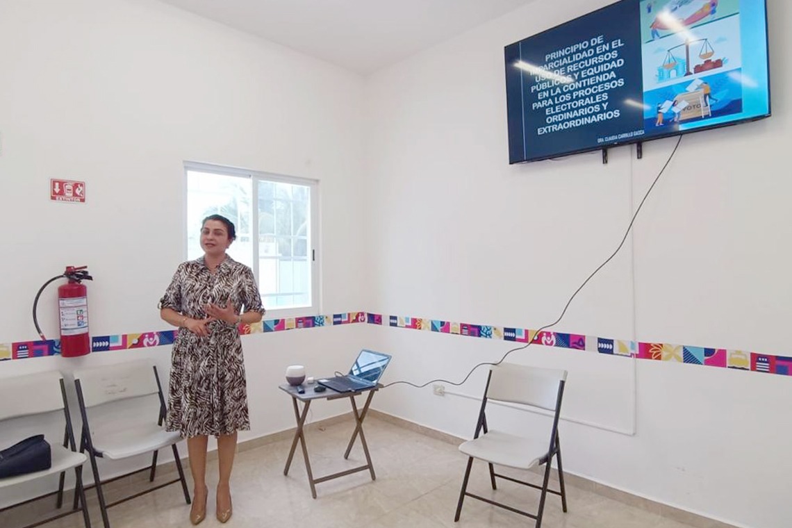 Isla Mujeres, Quintana Roo a 23 de febrero de 2024.- La Magistrada del Tribunal Electoral de Quintana Roo, Claudia Carrillo Gasca dictó la conferencia el “Principios de Imparcialidad en el uso de recursos públicos y equidad en la contienda para los procesos electorales ordinarios y extraordinarios”, en la Representación de Gobierno en la Zona Continental del Municipio de Isla Mujeres.