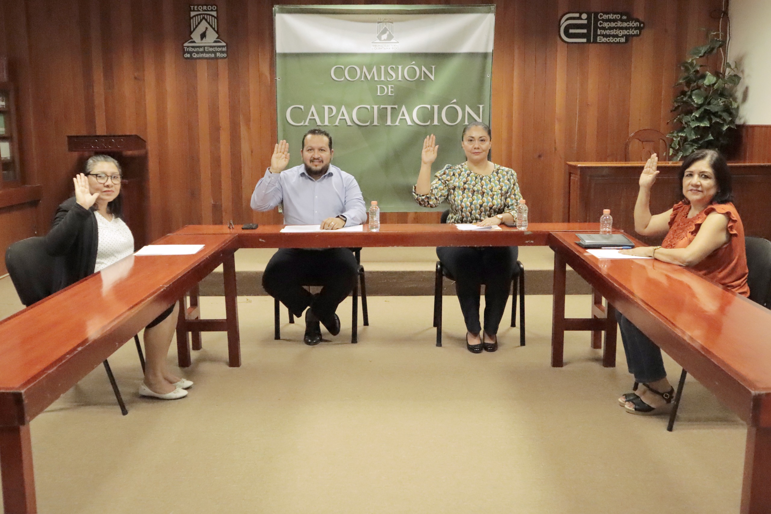 También participaron en esta reunión, Olga Tathiana González Morga, Jefa de la Unidad de Capacitación e Investigación y Secretaria de dicha comisión; así como Rossely Denisse Villanueva Kuyoc, Jefa del Área de Capacitación Electoral y Silvia Hernández Alonzo, Jefa de la Unidad de Comunicación y Difusión, la cual se realizó en el Aula del Centro de Capacitación e Investigación Electoral.