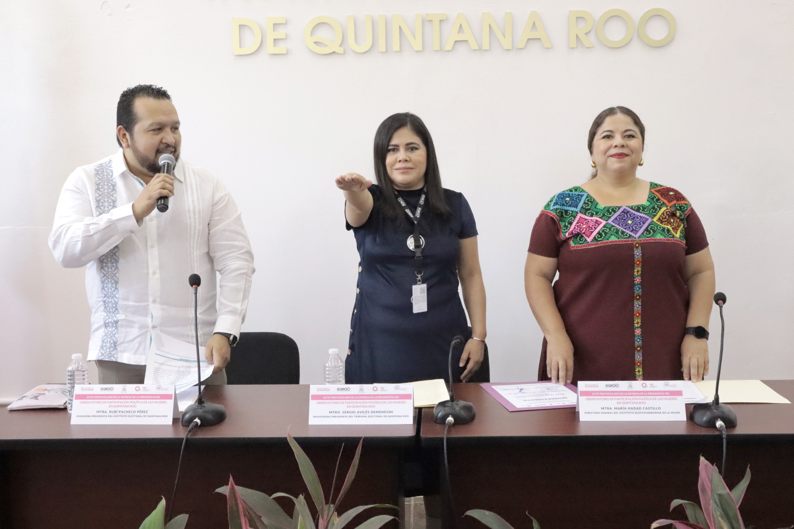 El OPPMQROO está integrado por el IEQROO, el IQM y el TEQROO, y tiene como objetivo fomentar el desarrollo de la participación política de las mujeres en Quintana Roo a través de acciones estratégicas para la toma de decisiones que garanticen el derecho a la igualdad y el reconocimiento de los derechos políticos-electorales como derechos humanos desde una perspectiva de género.