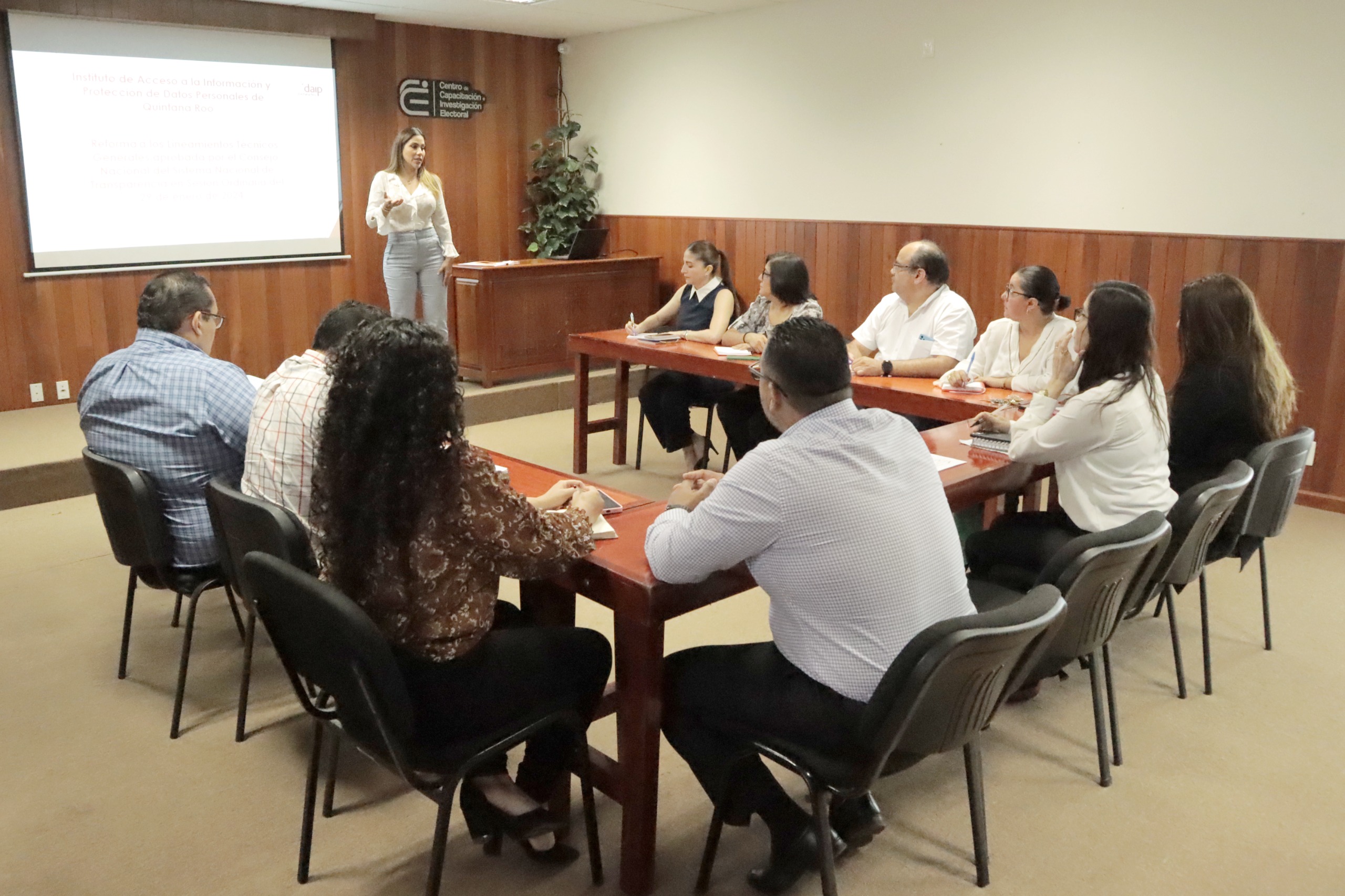 Chetumal, Quintana Roo a 21 de marzo de 2024.- La Jefa de la Unidad de Transparencia del Tribunal Electoral de Quintana Roo (TEQROO), Ilse Berenice Cossío Lugo convocó a una reunión de trabajo con el personal responsable de la carga de información de obligaciones de transparencia, para informar sobre la última reforma a los Lineamientos Técnicos Generales para la Publicación, Homologación y Estandarización de la Información de las Obligaciones de Transparencia.