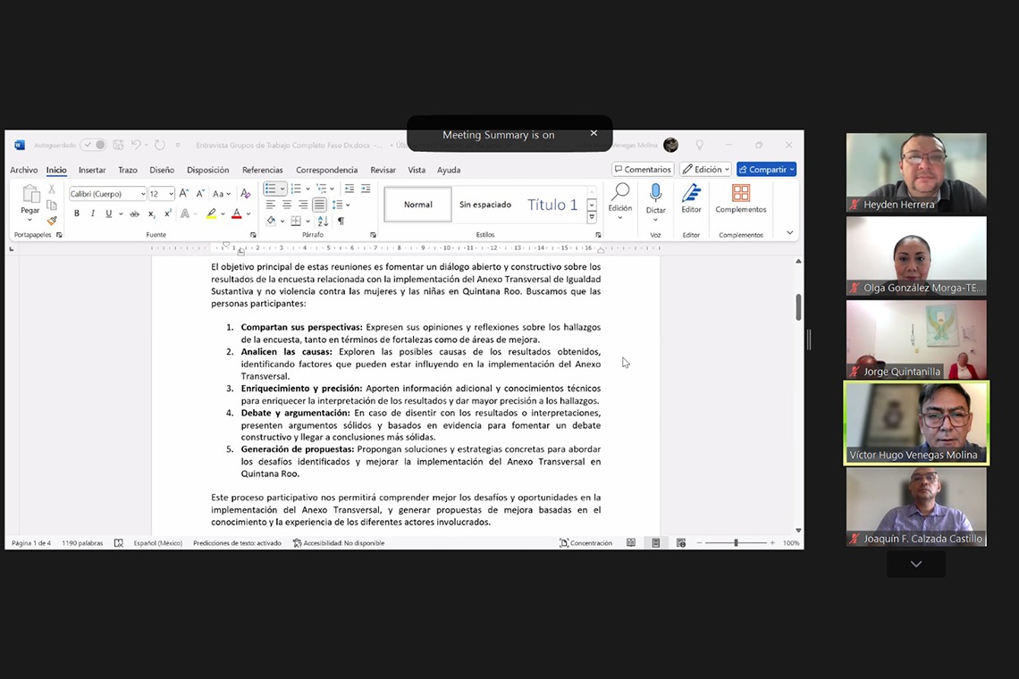 Personal del TEQROO participó en el grupo de trabajo en modalidad de Focus Group, realizado por la Sefiplan