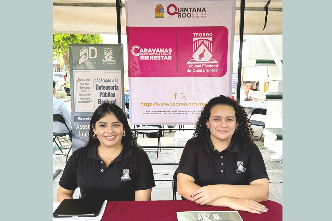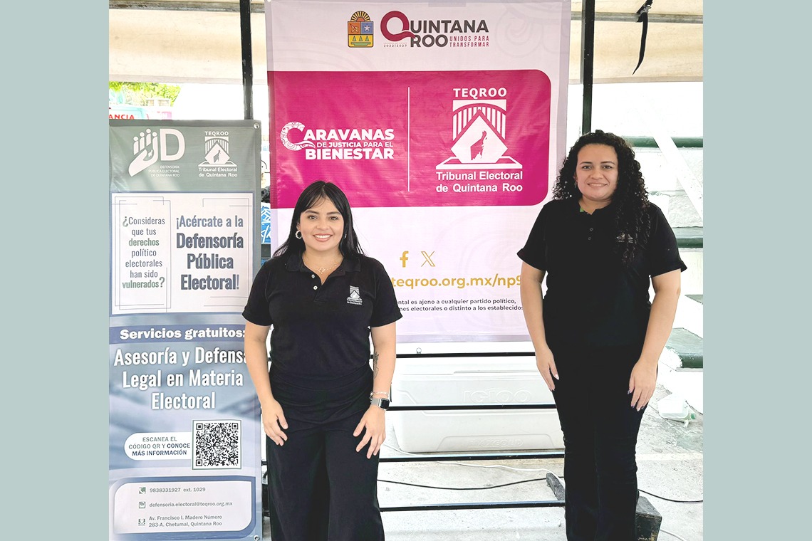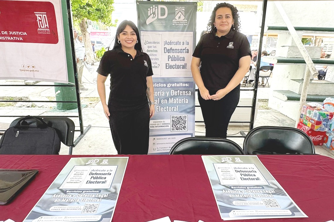 Por parte del TEQROO, asistió la Defensora Pública Electoral, Estefanía Carolina Caballero Vanegas y Montserrat Alejandra González Valencia, Auxiliar Administrativa, quienes ofrecieron información sobre la Defensoría Pública Electoral y los servicios que ofrece de manera gratuita, en específico, servicios de asesoría y defensa jurídica de los derechos político electorales de la ciudadanía.