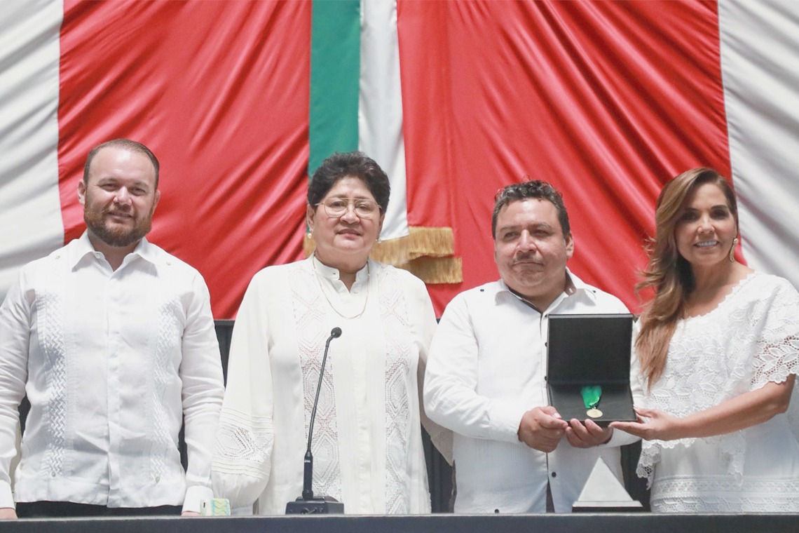 En la Sala de Plenos, Wildernain Villegas Carrillo, poeta y profesor investigador de la Universidad Intercultural Maya de Quintana Roo en José María Morelos, recibió este galardón de manos de la Mandataria Quintanarroense, por su aportación y preservación de la cultura maya.