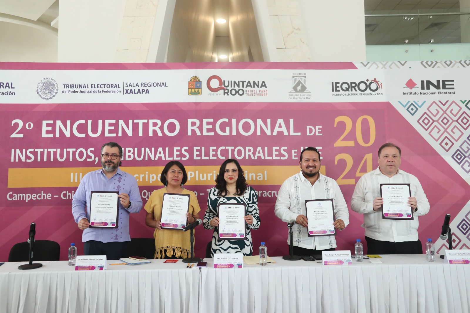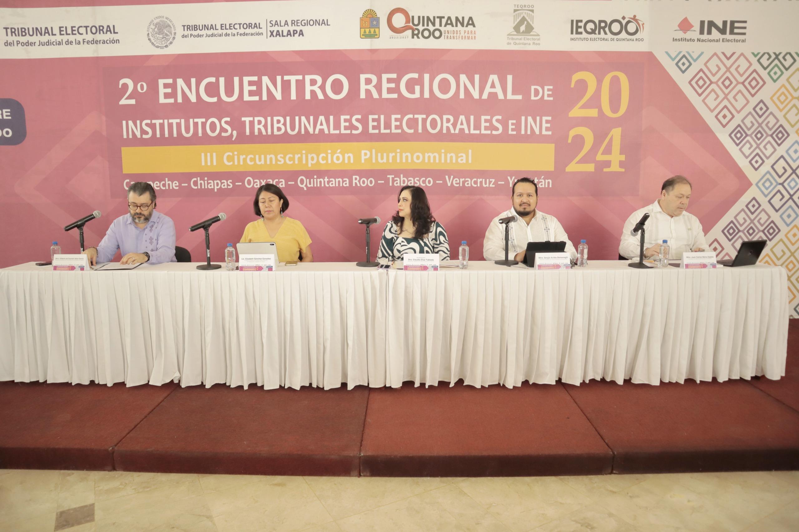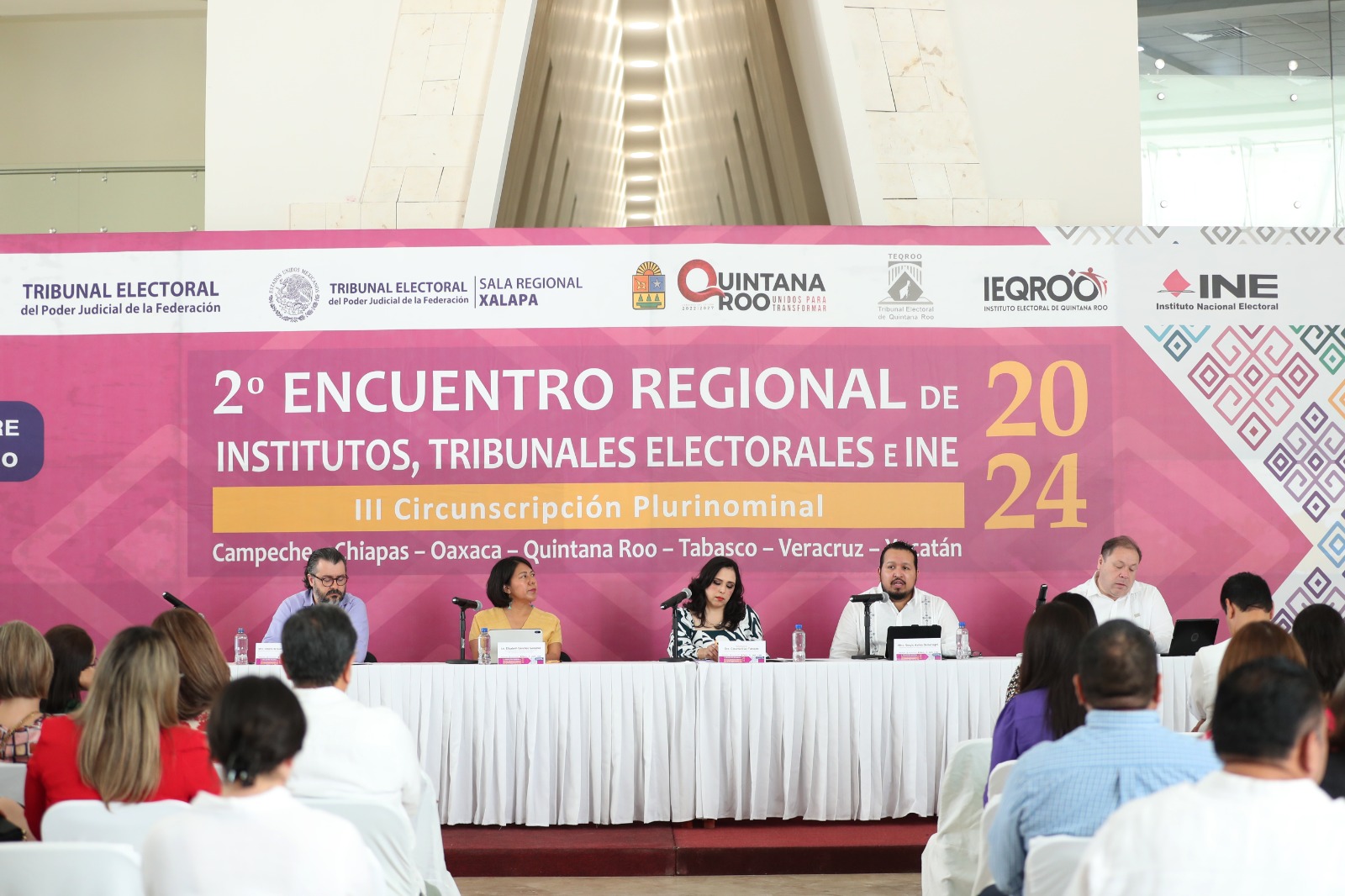 Al participar en la mesa “Balance de las elecciones 2024 en la III Circunscripción Plurinominal, desde lo local”, como parte del 2° Encuentro Regional de Institutos, Tribunales Electorales e INE 2024, que compartió con Gilberto de Guzmán Bátiz García, Magistrado presidente del Tribunal Electoral del Estado de Chiapas; con la Consejera Presidenta del Instituto Estatal Electoral y de Participación Ciudadana de Oaxaca, Elizabeth Sánchez González y con el exconsejero Presidente del Instituto Electoral del Estado de Campeche, Juan Carlos Mena Zapata, el Magistrado Presidente del TEQROO destacó también las acciones de la Defensoría Pública Electoral para la Protección de los Derechos Políticos Electorales del Estado de Quintana Roo.