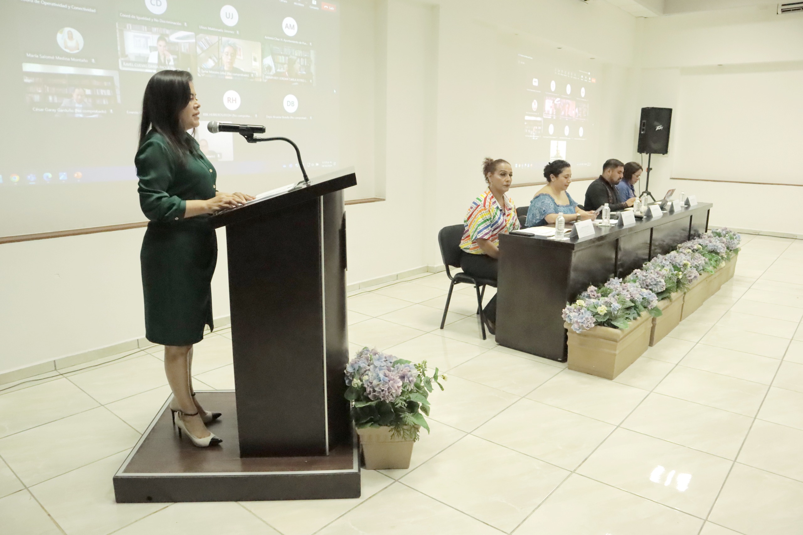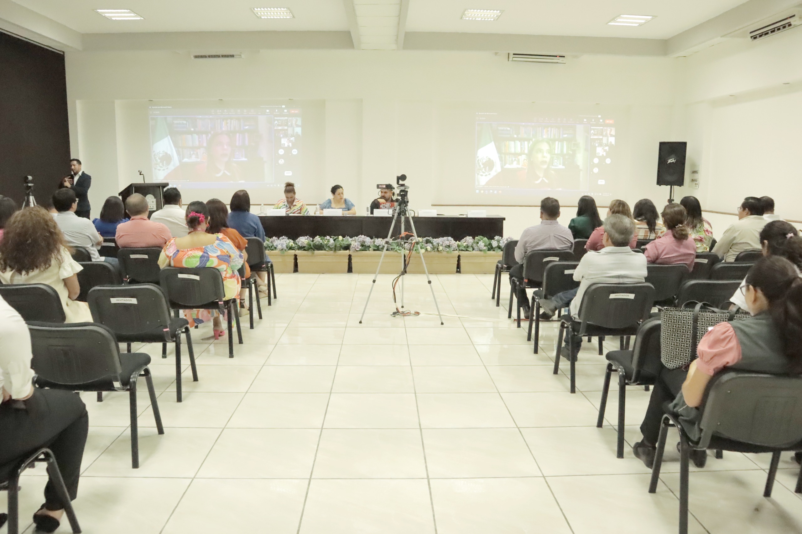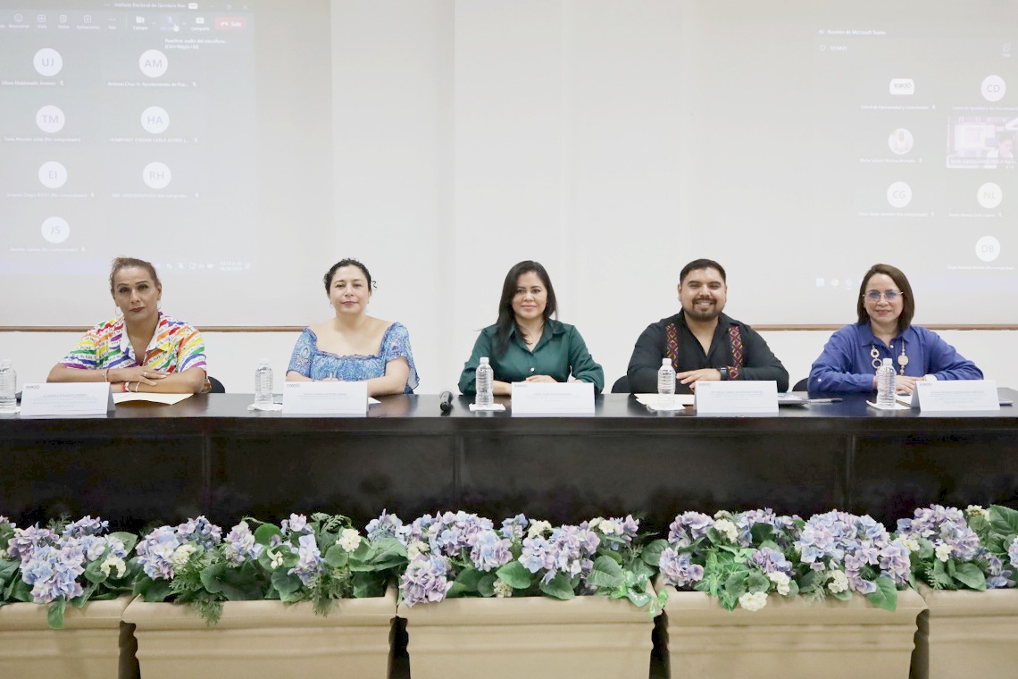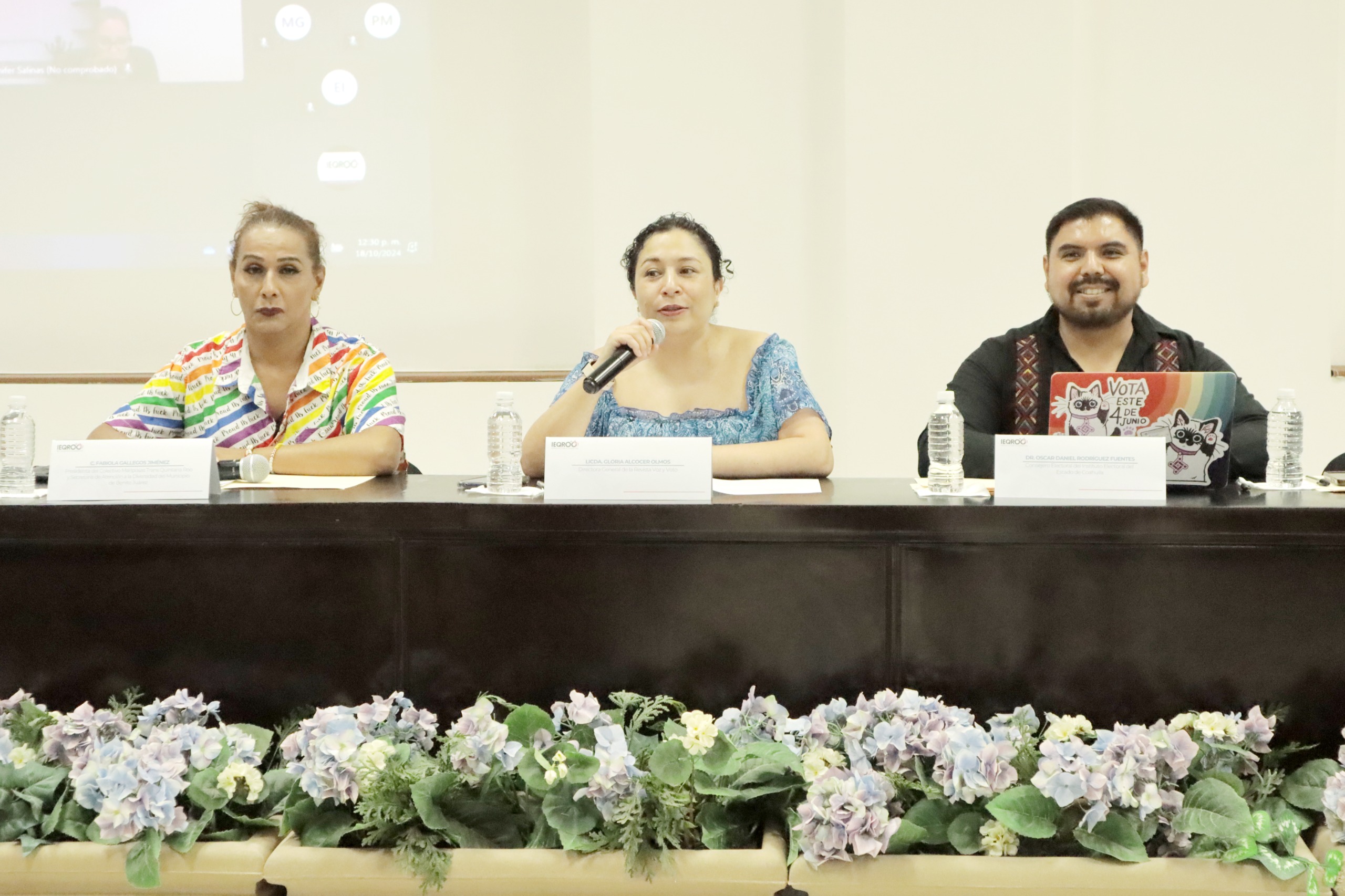 Participaron en el evento, la Consejera Presidenta del IEQROO, Rubí Pacheco Pérez; la Directora General de la Revista Voz y Voto, Gloria Alcocer Olmos; las Consejeras del Instituto Nacional Electoral Dania Paola Ravel Cuevas y Carla Astrid Humphrey Jordan; la Activista y Consejera de la Red por la Igualdad de Género, Tania Morales Olvera; la Presidenta del Colectivo Mariposas Trans Quintana Roo y Secretaria de Atención a la Diversidad del Municipio de Benito Juárez, Fabiola Gallegos Jiménez; la Consejera del IEQROO, Elizabeth Arredondo Gorocica y el Consejero del Instituto Electoral del Estado de Coahuila, Oscar Daniel Rodríguez Fuentes.