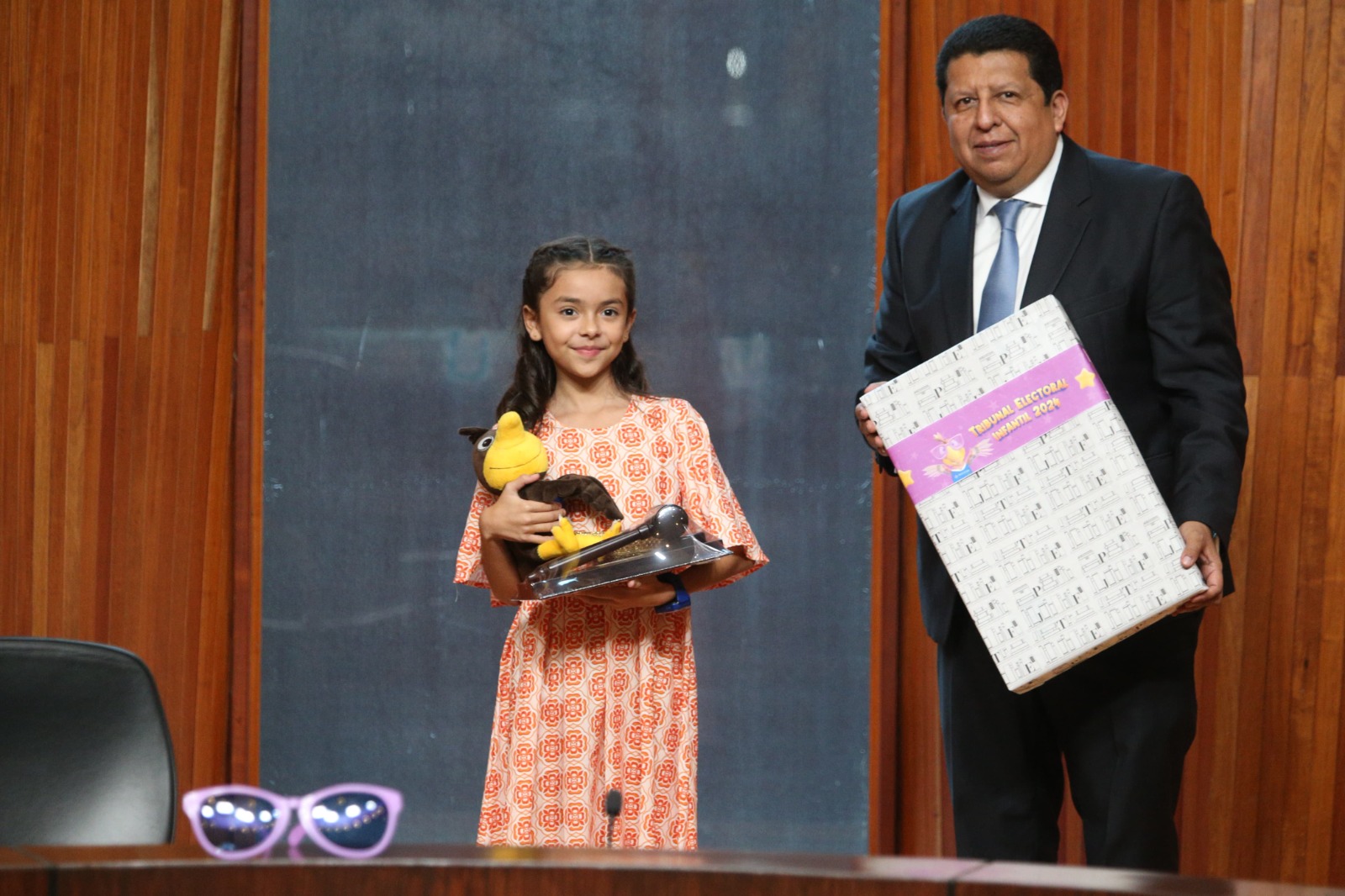 La niña Valentina Galindo Barbosa, de la ciudad de Chetumal, ganó el concurso del Tribunal Electoral Infantil 2024, que organiza el TEPJF y la OEA