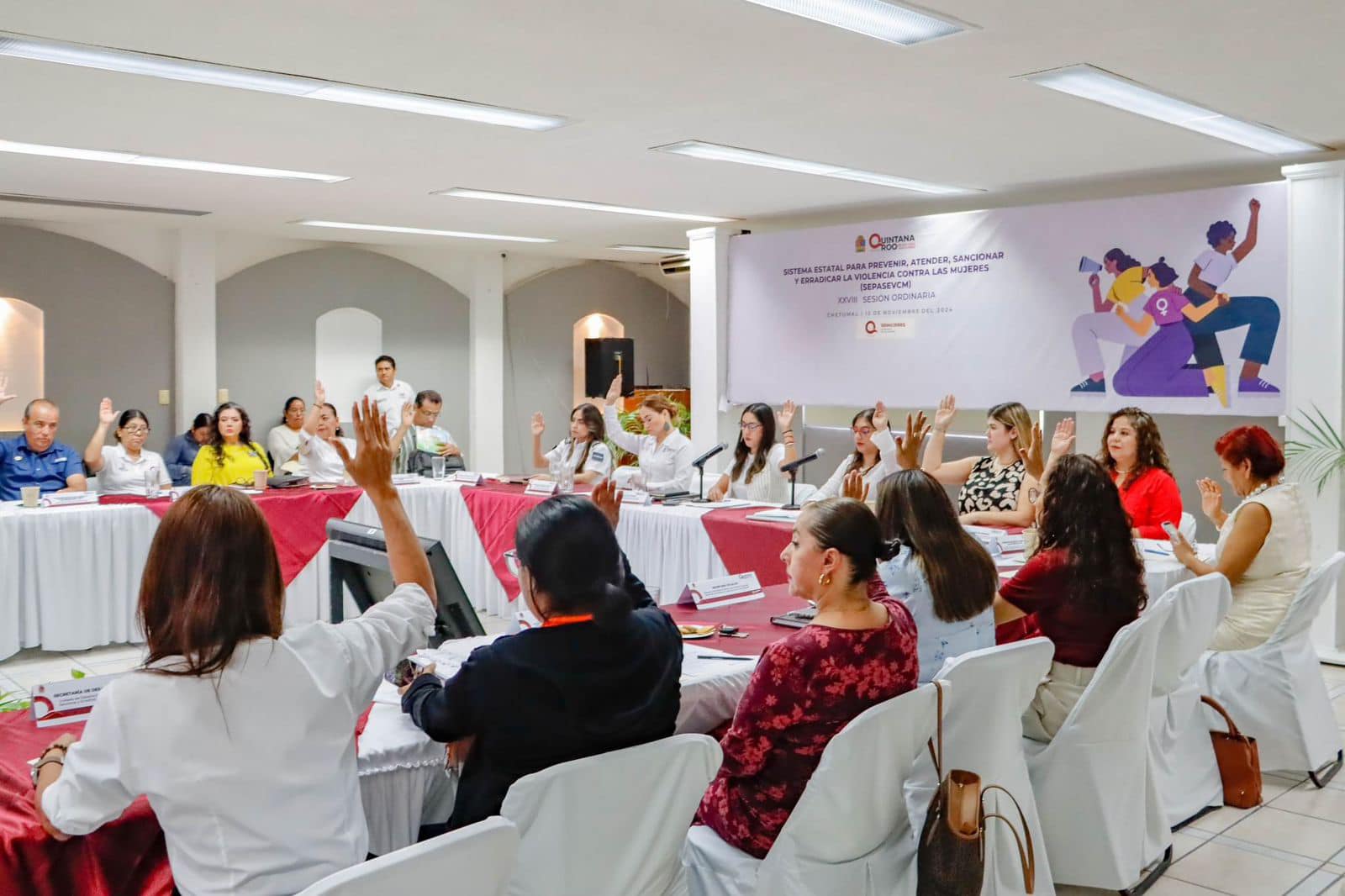 En esta sesión, entre otros puntos, se presentó y aprobó el Informe de Seguimiento de Acuerdos del Sistema Estatal PASEVCM; asimismo, se presentó el Proyecto Atlas de Género del Estado de Quintana Roo: Evaluación y Diagnóstico Geoespacial de la Violencia y el Informe Ejecutivo del Banco Estatal de Datos e Información sobre casos de Violencia contra las Mujeres del Tercer Trimestre del Ejercicio 2024.