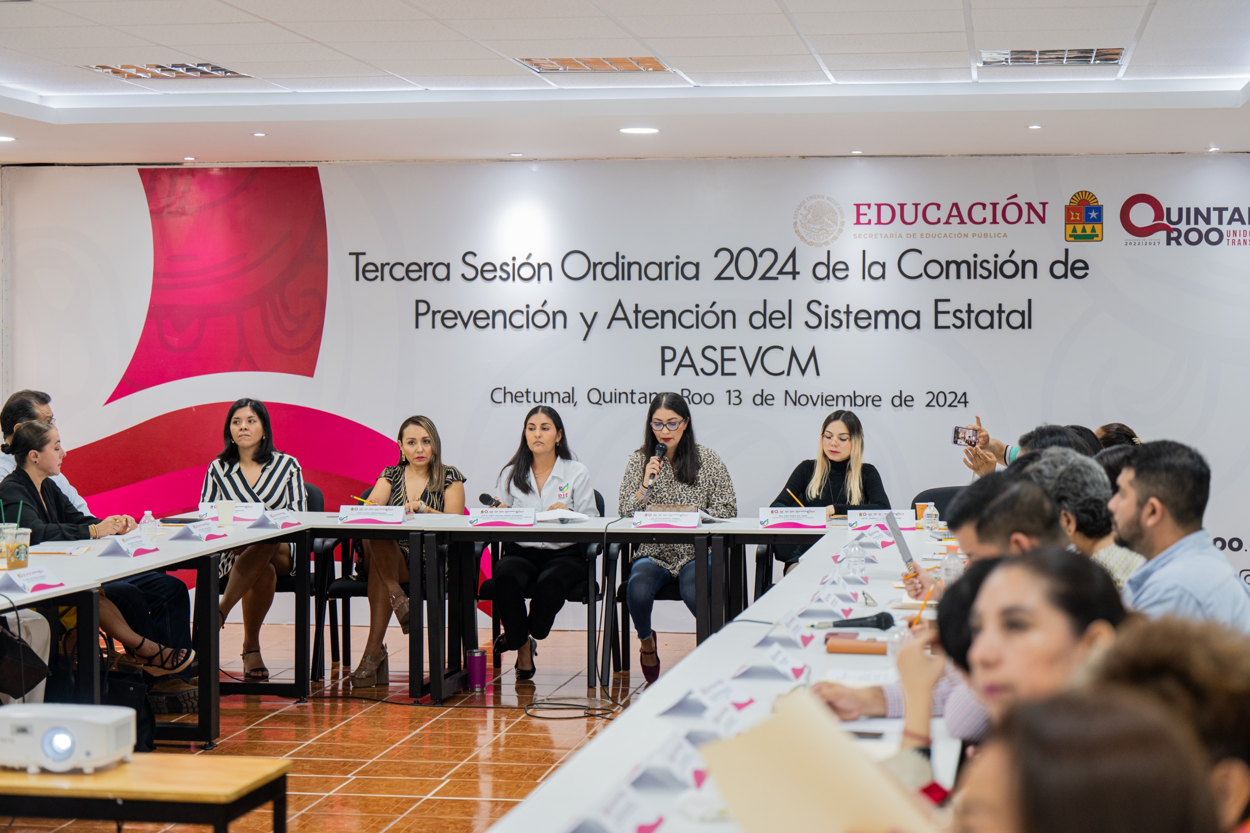 En esta reunión de trabajo, se presentó, entre otros puntos, el Informe de Avance del Modelo de Prevención de la Violencia contra las Mujeres del Estado de Quintana Roo, a cargo del personal de la Secretaría de Educación y de la Secretaría de Salud; así como, el Informe de Avance del Modelo de Atención, a cargo del Sistema para el Desarrollo Integral de la Familia del Estado y el Calendario de Sesiones Ordinarias 2025 de las Comisiones de Prevención y de Atención, a cargo del personal de la Secretaría de Educación.