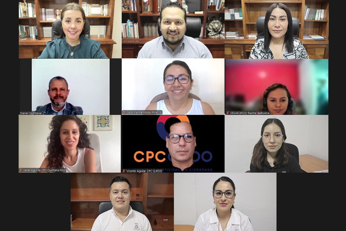 Participaron Janet Aguirre Dergal, Presidenta del CPCQROO e Integrantes de dicho Comité, Carolina Mendoza Polanco y Vicente Aguilar Rojas; así como el consultor, Daniel Quintanar y Rachel Balbuena, Jefa del Departamento de Vinculación y Acuerdos de SESAEQROO.