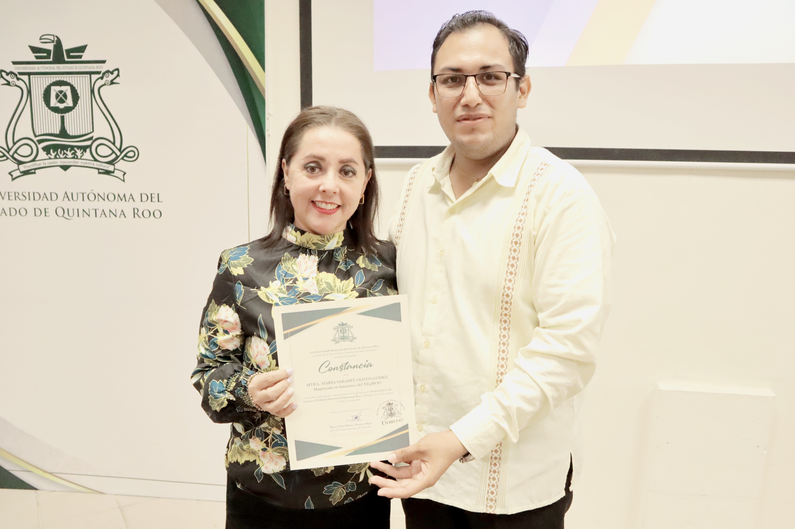 La moderación estuvo a cargo del estudiante Jossmar Pineda Reyes, mientras que el encargado de entregar los reconocimientos fue el alumno Luis Ramírez Baeza. También estuvieron presentes, el Jefe del Departamento de Derecho de la UQROO, Carlos Herrera Mejía y el profesor José del Carmen Lugo.