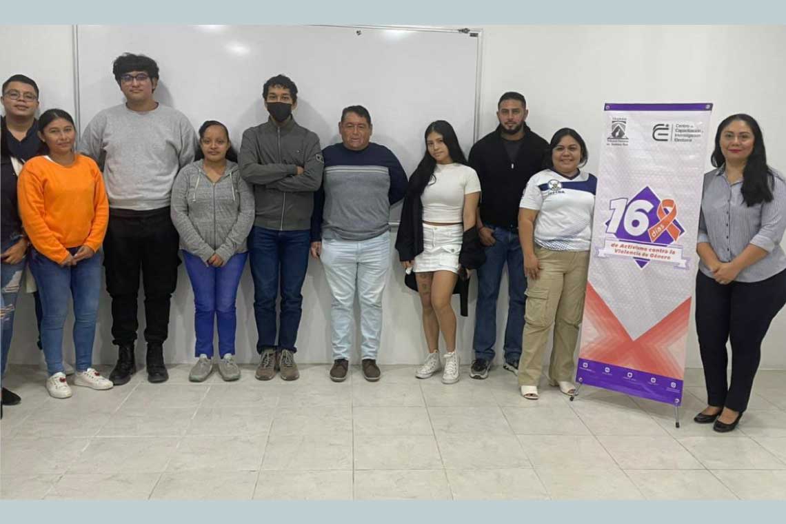 La actividad se realizó en el Aula 17 de la institución educativa, en donde también participó Rossely Denisse Villanueva Kuyoc, Jefa de Área de Capacitación del Tribunal Electoral, y por parte del IESCDA, Herminia Ibarra Ramírez, Directora de Vinculación y Extensión Universitaria.