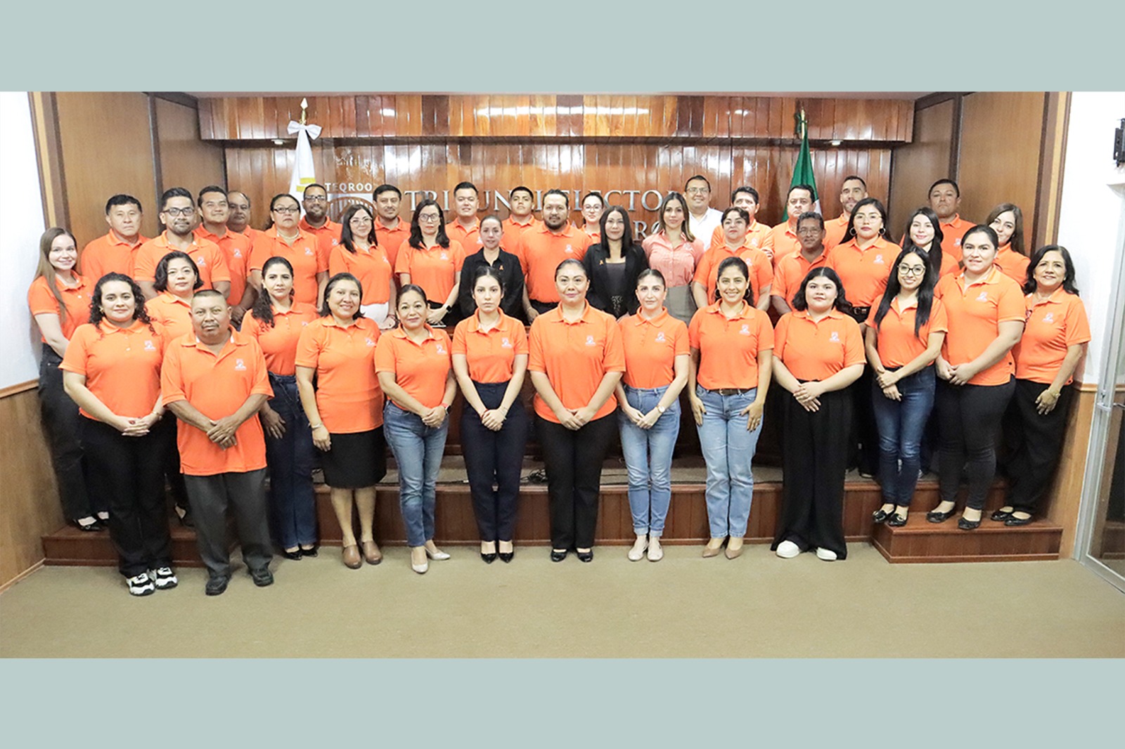Chetumal, Quintana Roo, a 25 de marzo de 2025.- En el marco del Día Naranja, establecido el 25 de cada mes para visibilizar la importancia de la prevención de la violencia de género, el Magistrado Presidente del Tribunal Electoral de Quintana Roo, Sergio Avilés Demeneghi, las Magistradas en Funciones, Maogany Crystel Acopa Contreras y María Sarahit Olivos Gómez, así como la Titular del Órgano Interno de Control, Ilse Berenice Cossío Lugo y el personal de la institución, portaron vestimenta naranja como una muestra simbólica de su compromiso con la promoción de la igualdad y el respeto a los derechos de las mujeres.