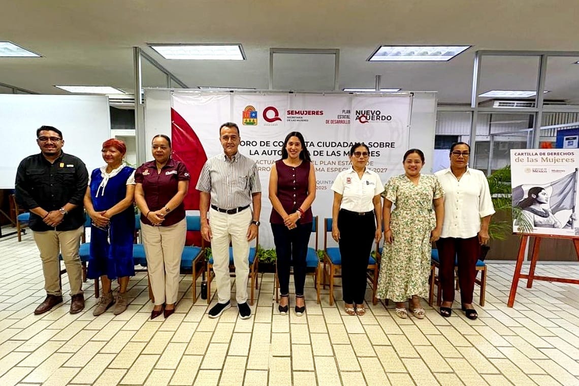 Chetumal, Quintana Roo a 26 de mayo de 2025.- La titular de la Defensoría Pública Electoral del Tribunal Electoral de Quintana Roo, Nallely Anahí Aragón Serrano, participó en el Foro de Consulta Ciudadana para la Actualización del Tema 1.7: Autonomía Plena de las Mujeres, del Programa Estatal de Desarrollo 2023-2027. El evento fue encabezado por la Secretaria de las Mujeres del Estado de Quintana Roo, Esther Burgos Jiménez.