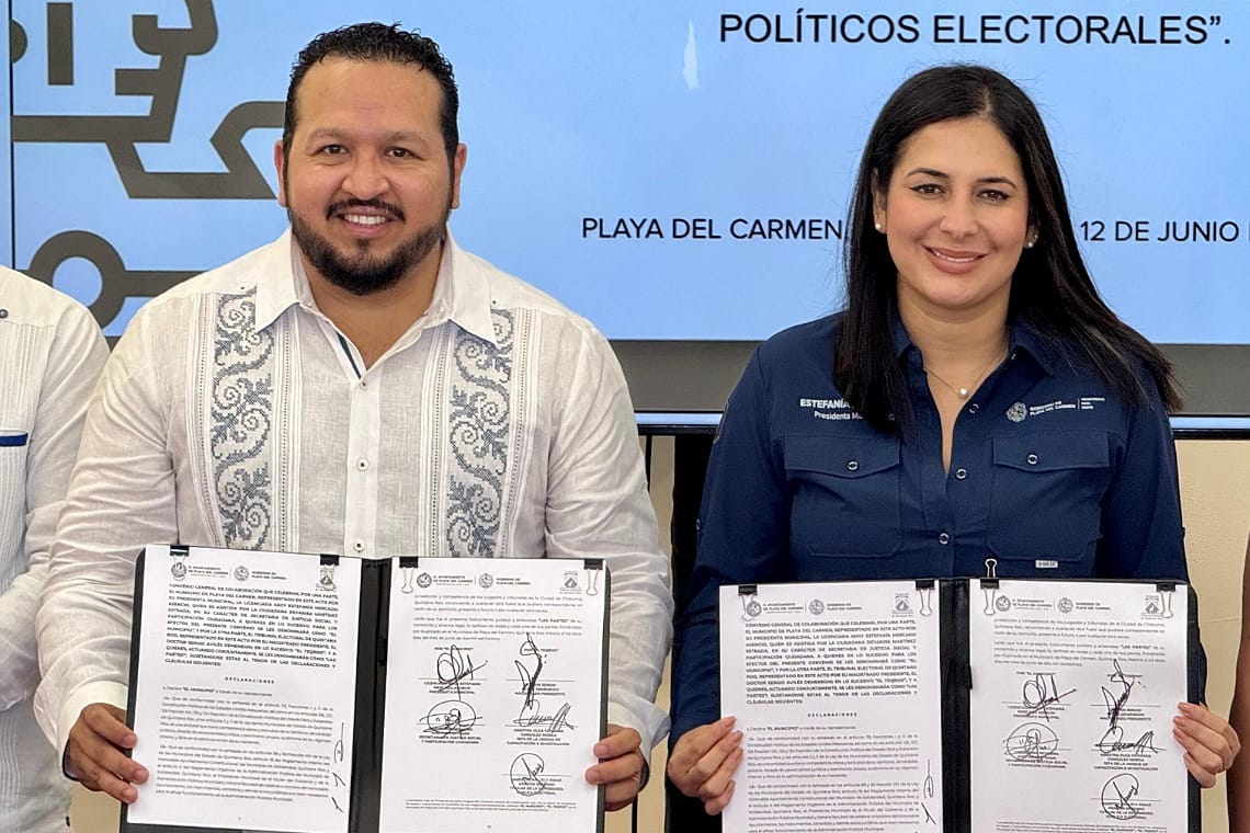 El acuerdo fue suscrito por el Magistrado Presidente del TEQROO, Sergio Avilés Demeneghi, y la Presidenta Municipal de Playa del Carmen, Angy Estefanía Mercado Asencio, en un acto protocolario que contó con la presencia de las Magistradas Claudia Ávila Graham y Thalía Hernández Robledo.