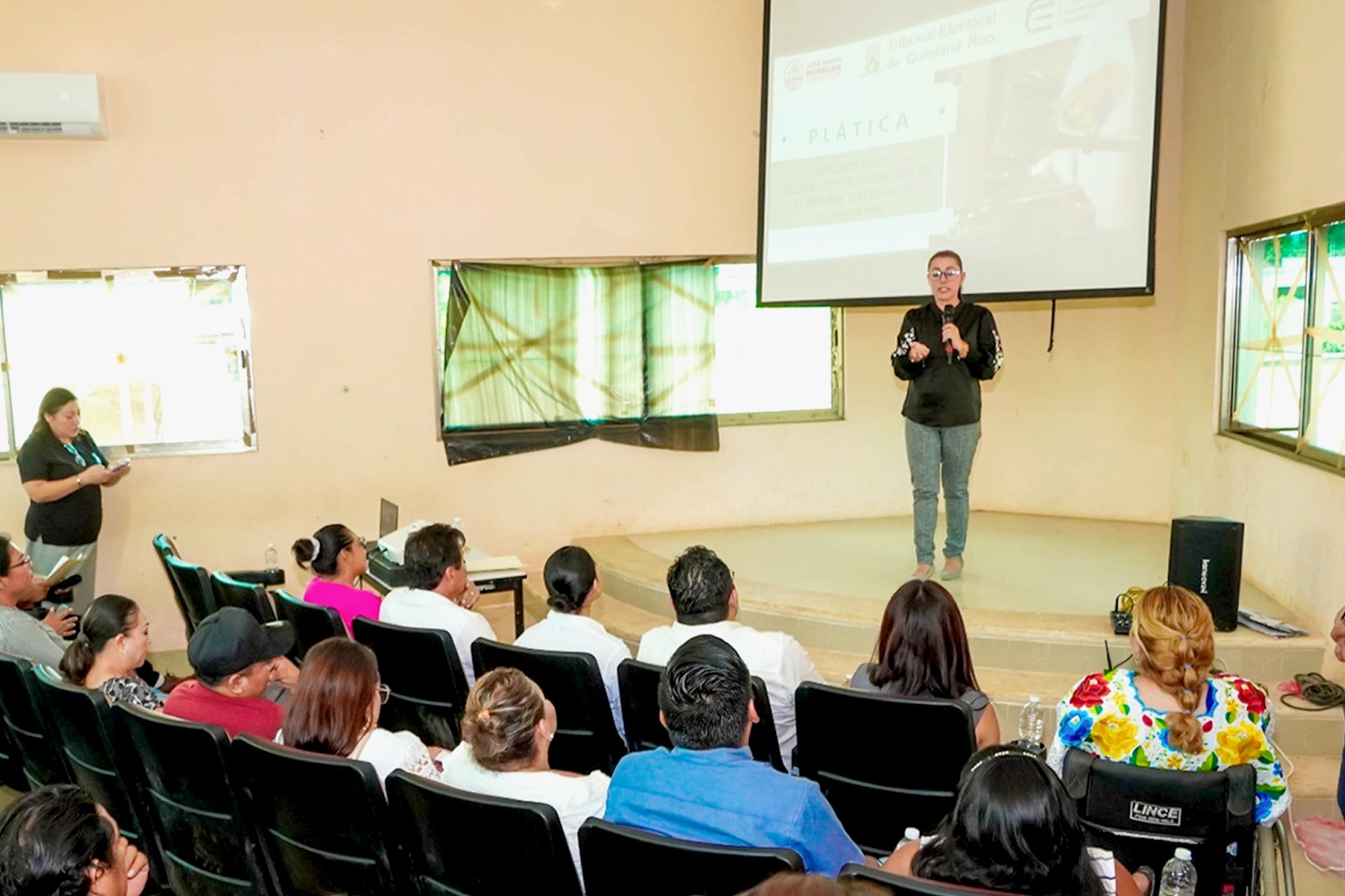 Posterior a la firma, como parte de las actividades conjuntas, personal de la Unidad de Capacitación e Investigación del TEQROO impartió la plática “Los Derechos Político-Electorales y su protección en el Tribunal Electoral de Quintana Roo”, en el Auditorio del Centro Cultural Bicentenario, dirigida a servidoras y servidores públicos municipales, organizaciones civiles y ciudadanía, reuniéndose alrededor de 70 personas. La actividad fue clausurada por la Secretaría General del Ayuntamiento, Rita María Vásquez Márquez.