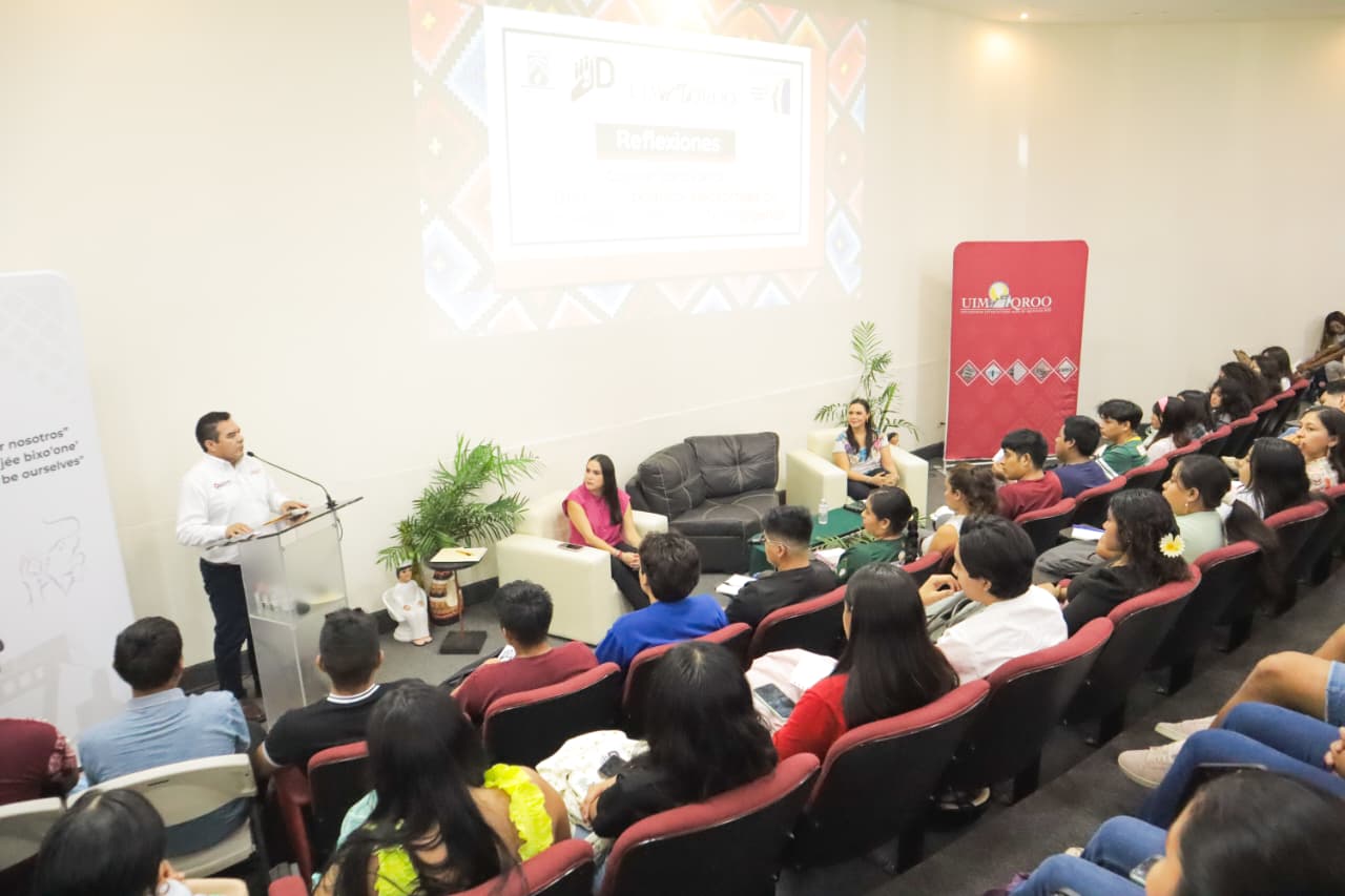 El mensaje de bienvenida estuvo a cargo del Rector de la UIMQROO, William Hernando Briceño Guzmán. De igual manera, se aprovechó el espacio para difundir los servicios que brinda la Defensoría Pública Electoral del TEQROO.
