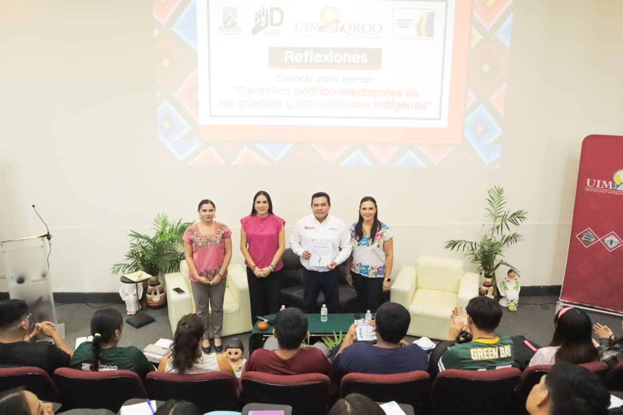 El público asistente, conformado principalmente por estudiantes de la Universidad Intercultural Maya, participó activamente en el intercambio de ideas, enriqueciendo el diálogo sobre el reconocimiento y ejercicio de los derechos político-electorales de los pueblos indígenas.