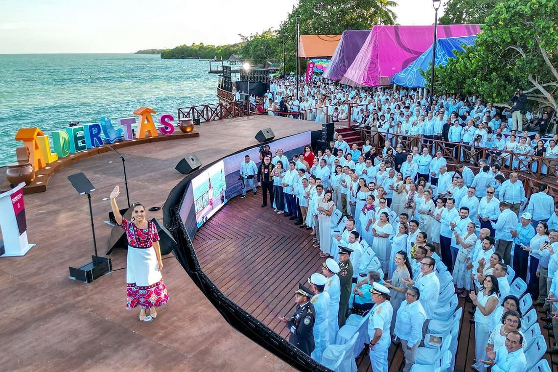 La ceremonia, que se llevó a cabo en la Plaza al Mar de la zona costera de la comunidad de Calderitas, representó un espacio de rendición de cuentas en el que la titular del Ejecutivo estatal presentó ante la ciudadanía los principales logros, avances y acciones emprendidas durante el último año de su administración.