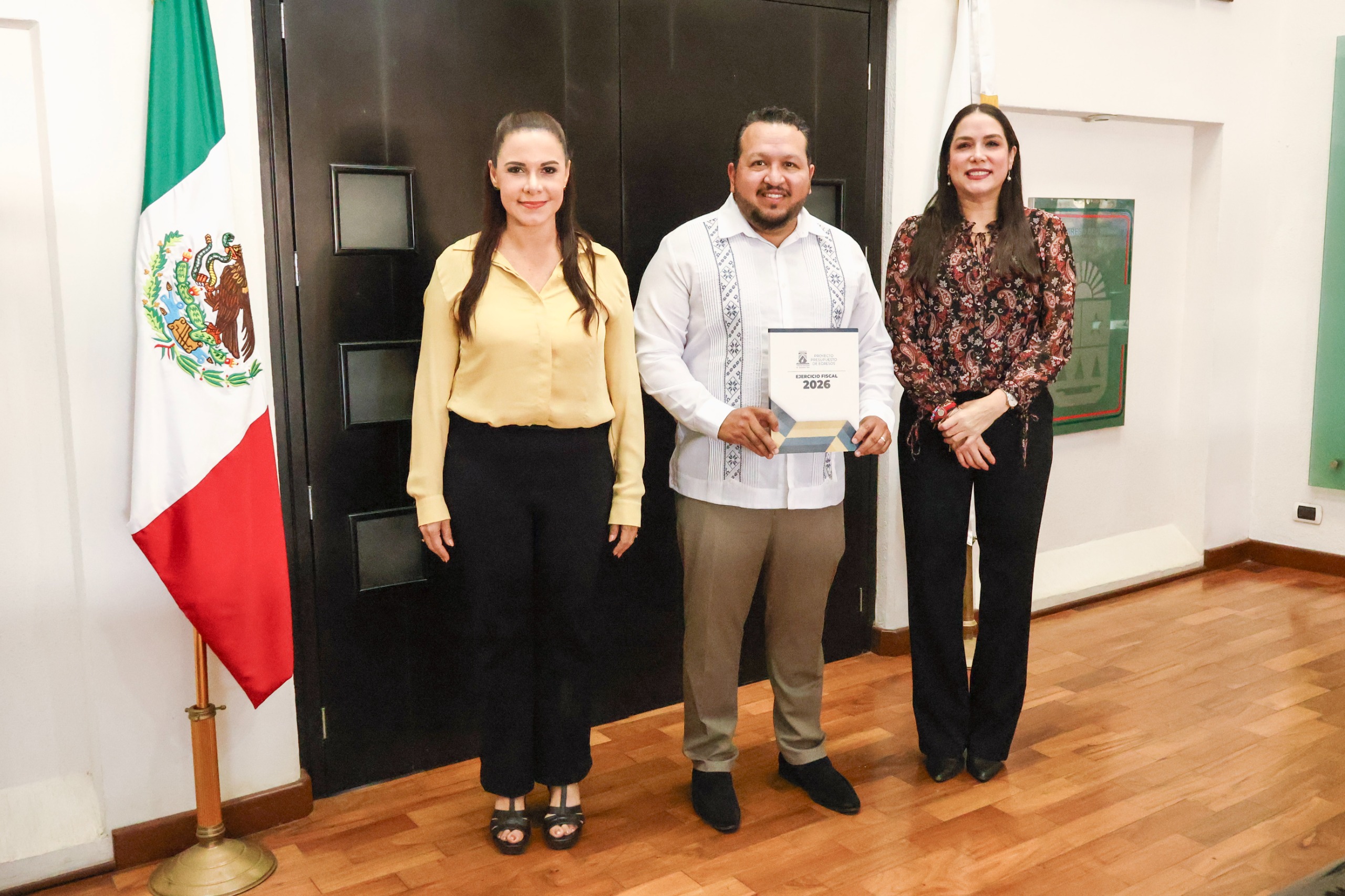Chetumal, Quintana Roo, 19 de noviembre de 2025.- El Magistrado Presidente del Tribunal Electoral de Quintana Roo (TEQROO), Sergio Avilés Demeneghi, junto con las Magistradas Claudia Ávila Graham y Thalía Hernández Robledo, acudieron este día al Congreso del Estado para entregar al diputado Renán Sánchez Tajonar, Presidente de la Junta de Gobierno y Coordinación Política de la XVIII Legislatura, el Proyecto de Presupuesto de Egresos correspondiente al Ejercicio Fiscal 2026.