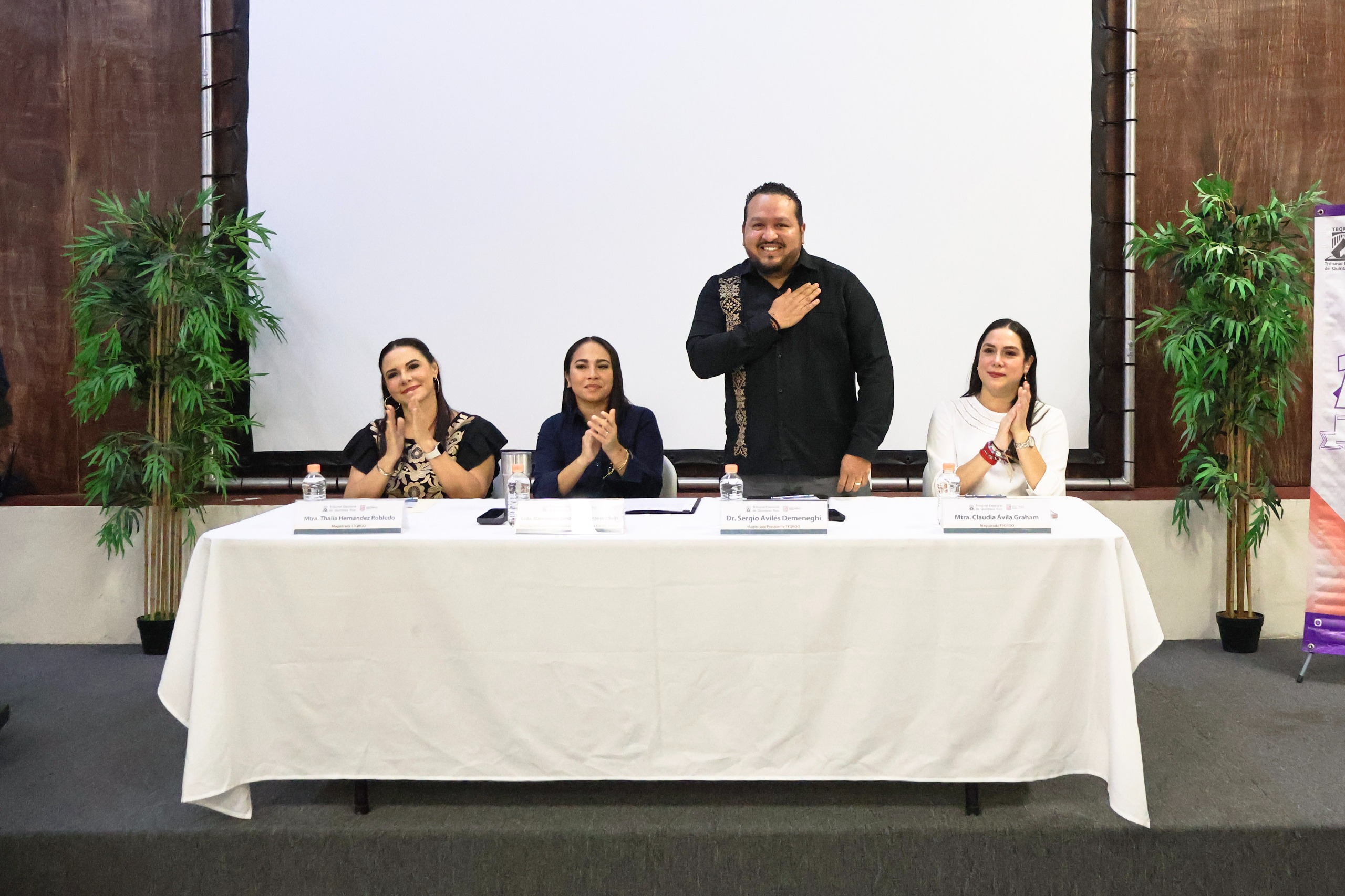 La ceremonia protocolaria fue encabezada por el Magistrado Presidente del TEQROO, Sergio Avilés Demeneghi y la Presidenta Municipal, Maricarmen Hernández, acompañados por las Magistradas Claudia Ávila Graham y Thalía Hernández Robledo, quienes integraron el presídium.